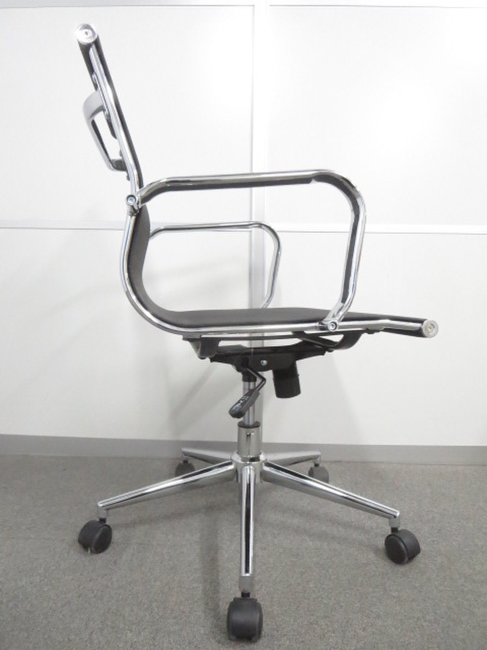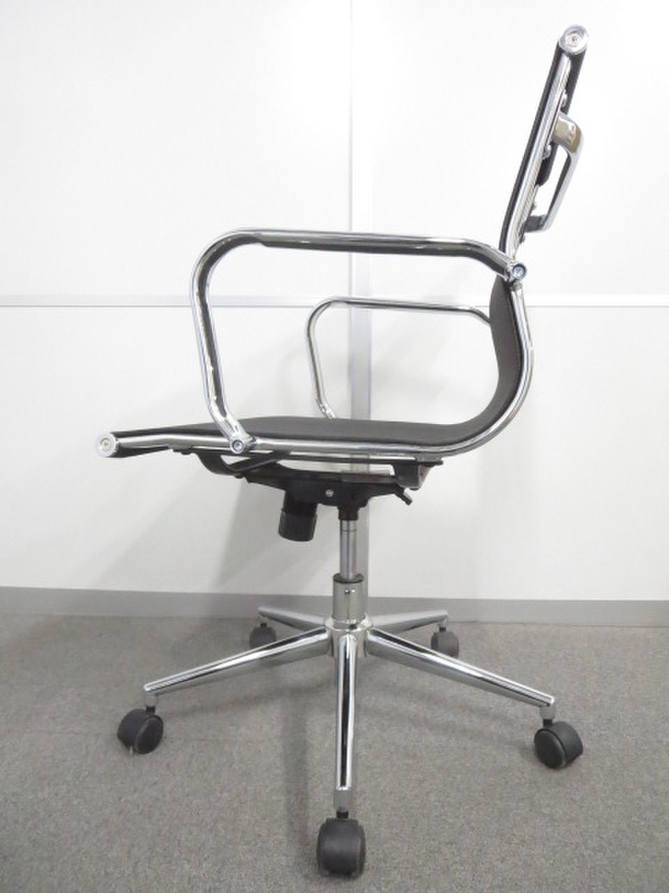 スチールメッキのフレーム・脚によって高級感をも併せ持ったオフィスチェアです。