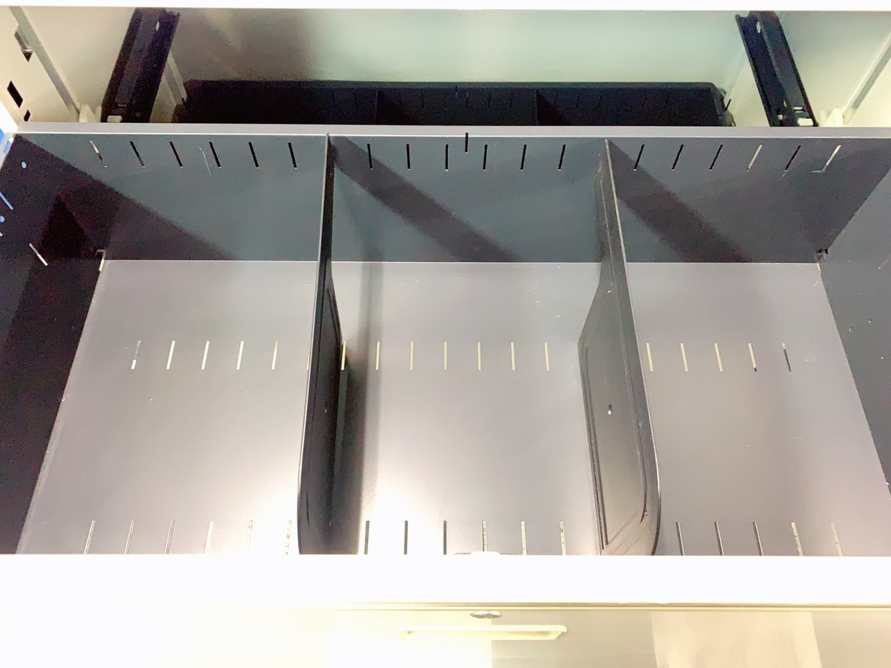 引出の開き幅が広いと奥まで中身が見渡せ、整頓や業務短縮、業務効率化に役立ちます。