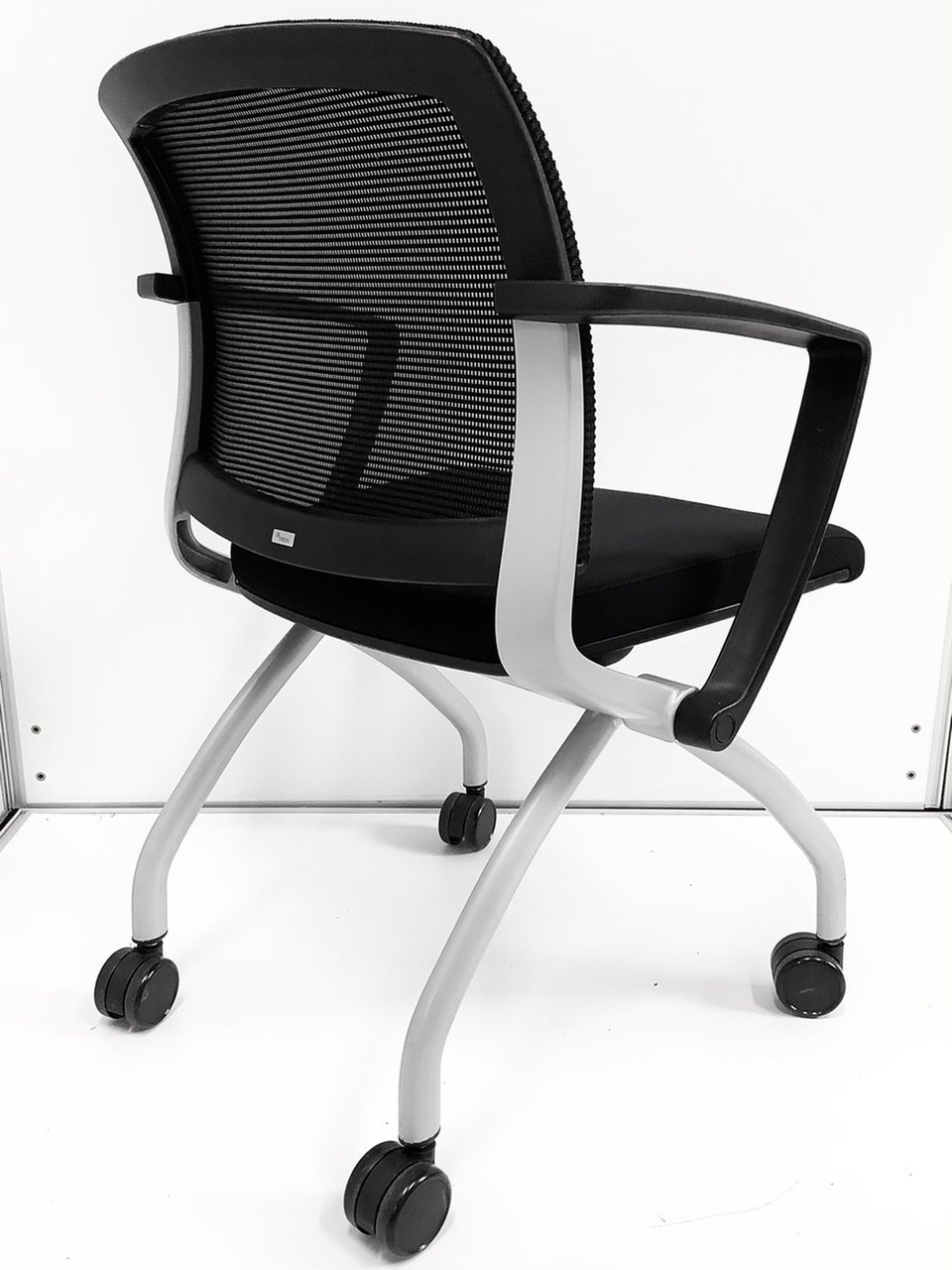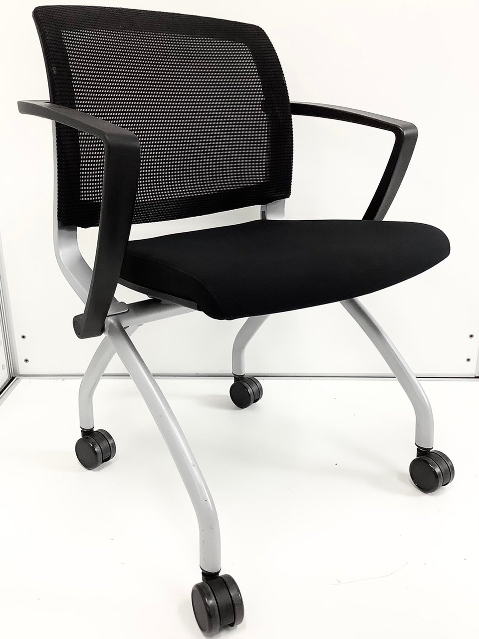 【黒で肘付き!】簡易的な会議室のチェアにおすすめ!ショッピングカートのように重ねられます!- 立川・八王子店