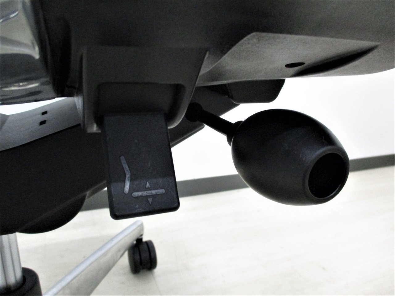 ロッキングは、任意の位置でロックすることが可能で、強さの調節は座面右下のグリップで座った状態で行えます。