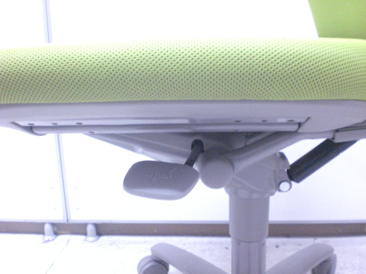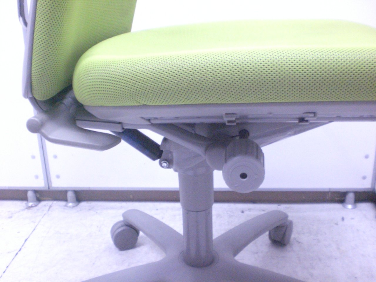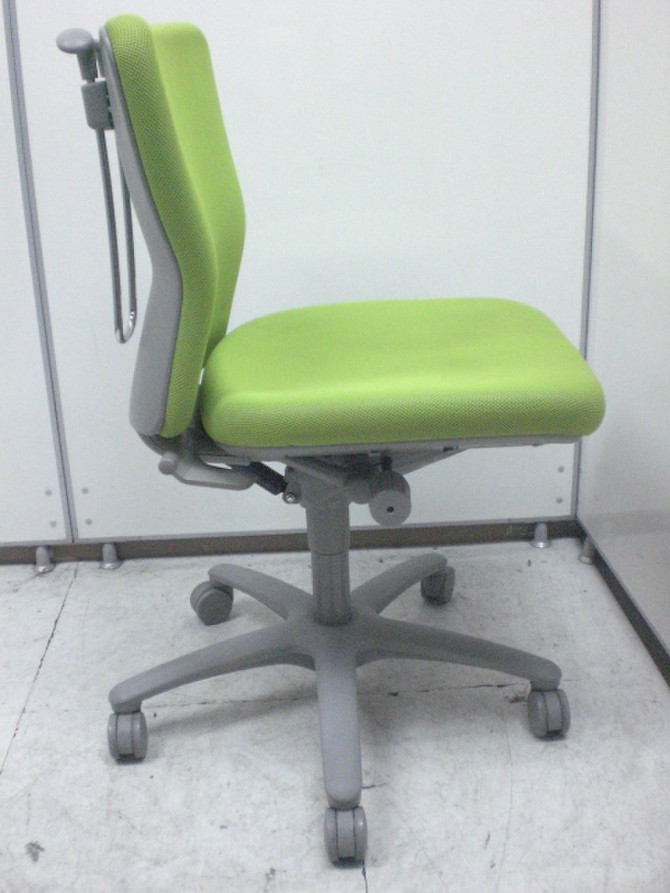 人間工学を基に設計されたロークラスチェア!ライトグリーンカラーでオフィスも明るくなります!■オカムラ■コートハンガー■リクライニングロック【値下品】