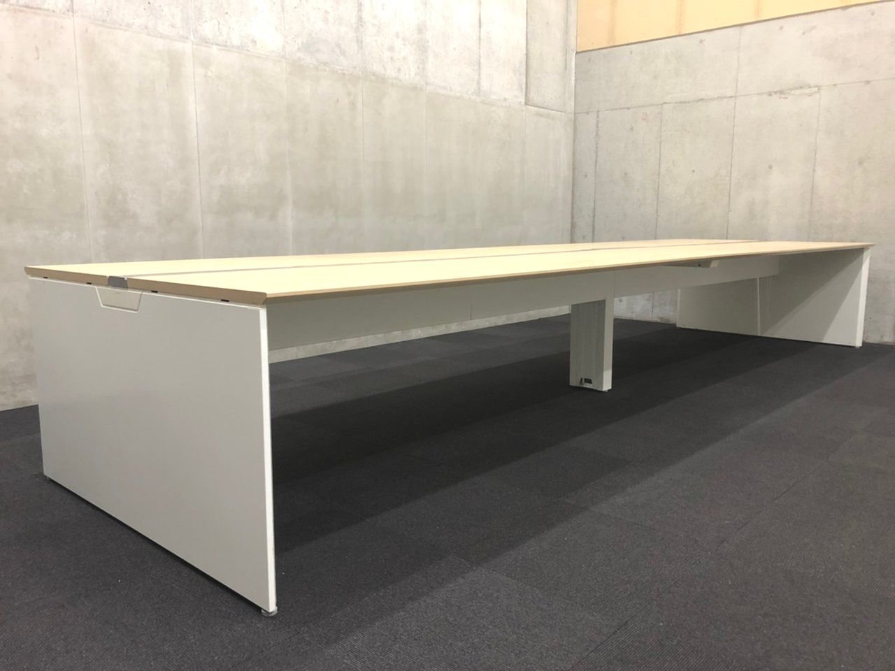 【コロナ対策にも!】オカムラ(okamura)プロユニットフリーウェイ (ProUnit Freeway) フリアドデスク 幅4000㎜/色:ナチュラル(ネオウッドライト)/8~10名様推奨