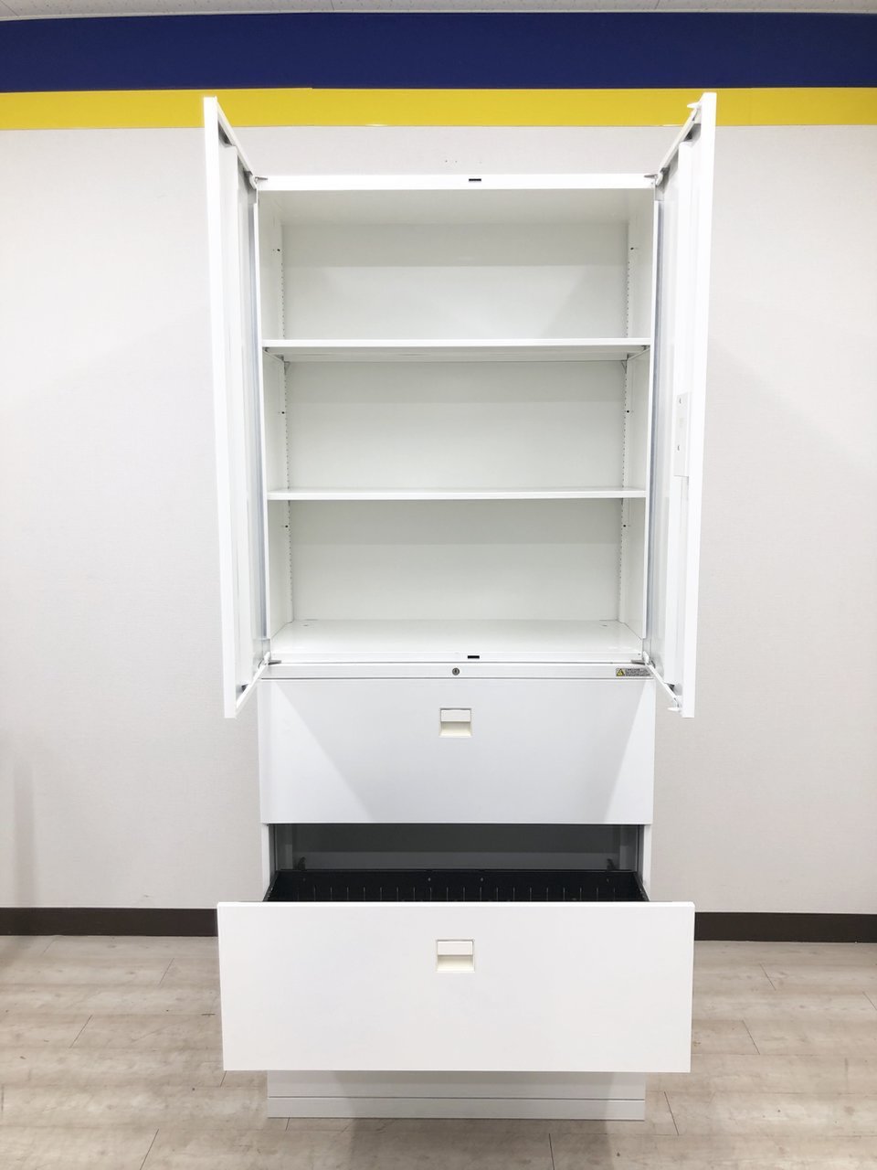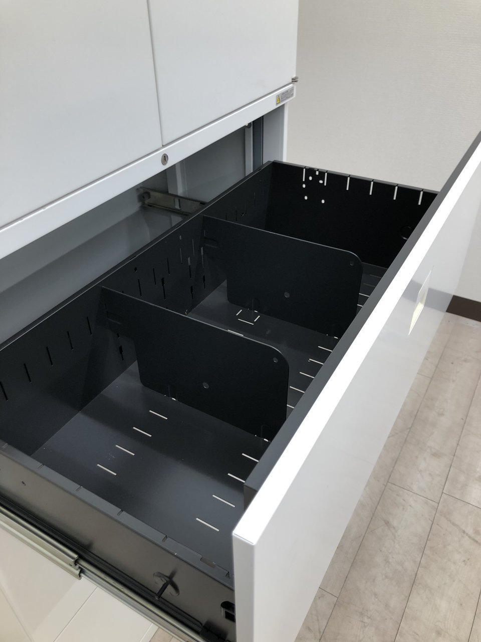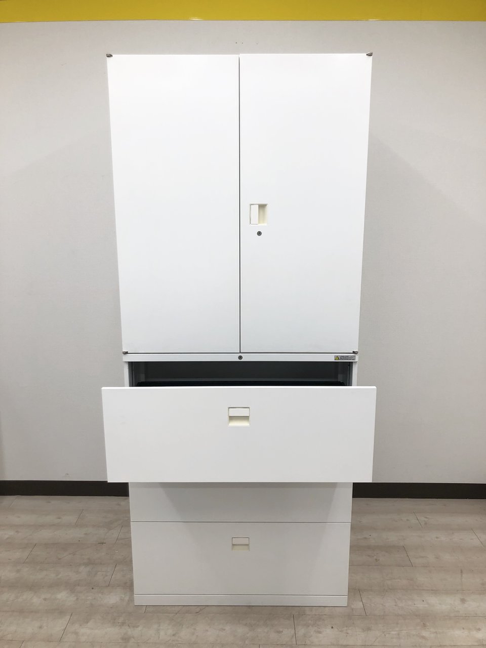 - 一部不具合ありそ引出の開閉不可、施錠不可、棚板無しといったの書庫の本来の効用を果たすための機能以外の一部が使用不可(例、扉、引出の開閉がしづらいなどがある。 )