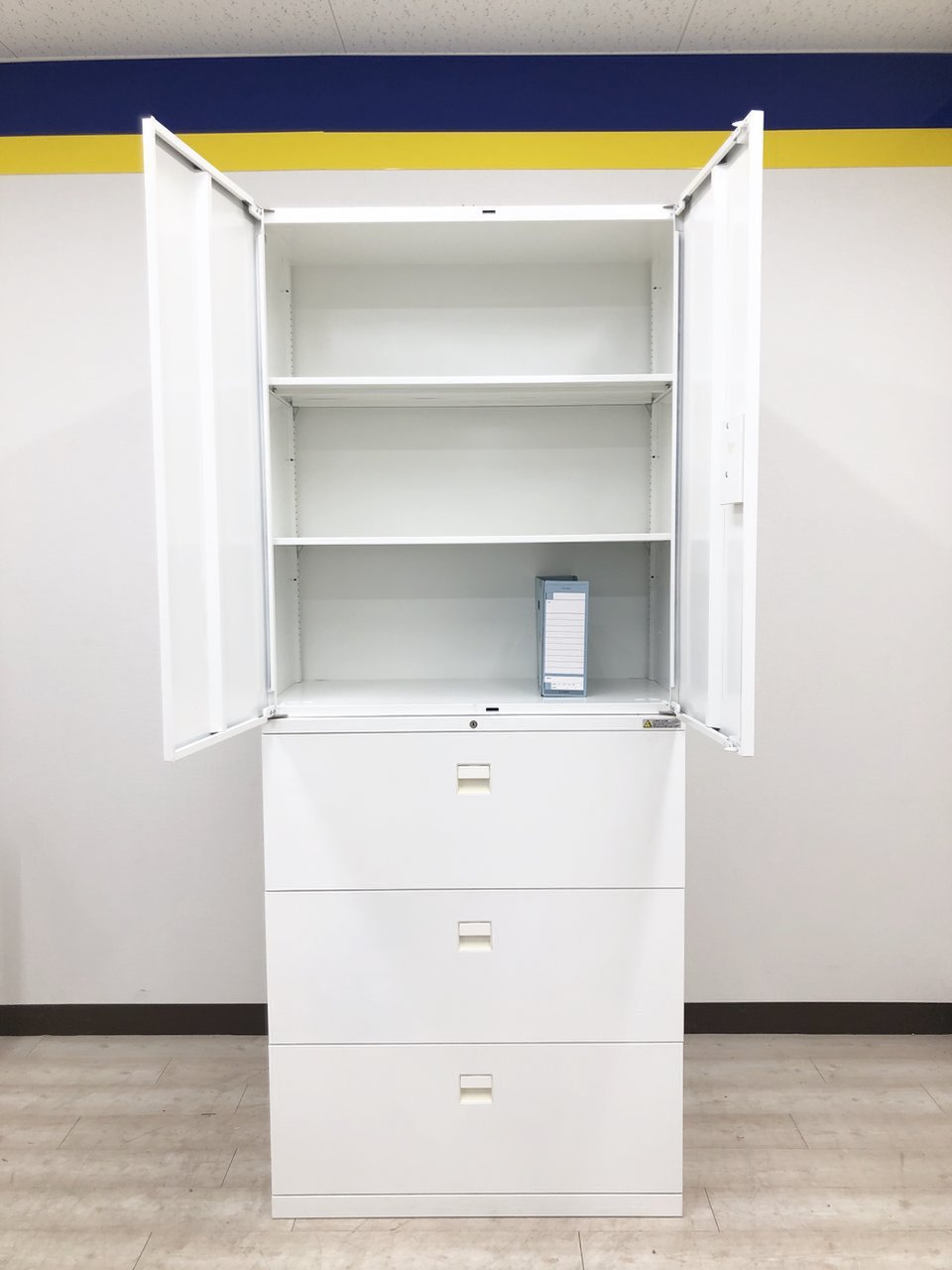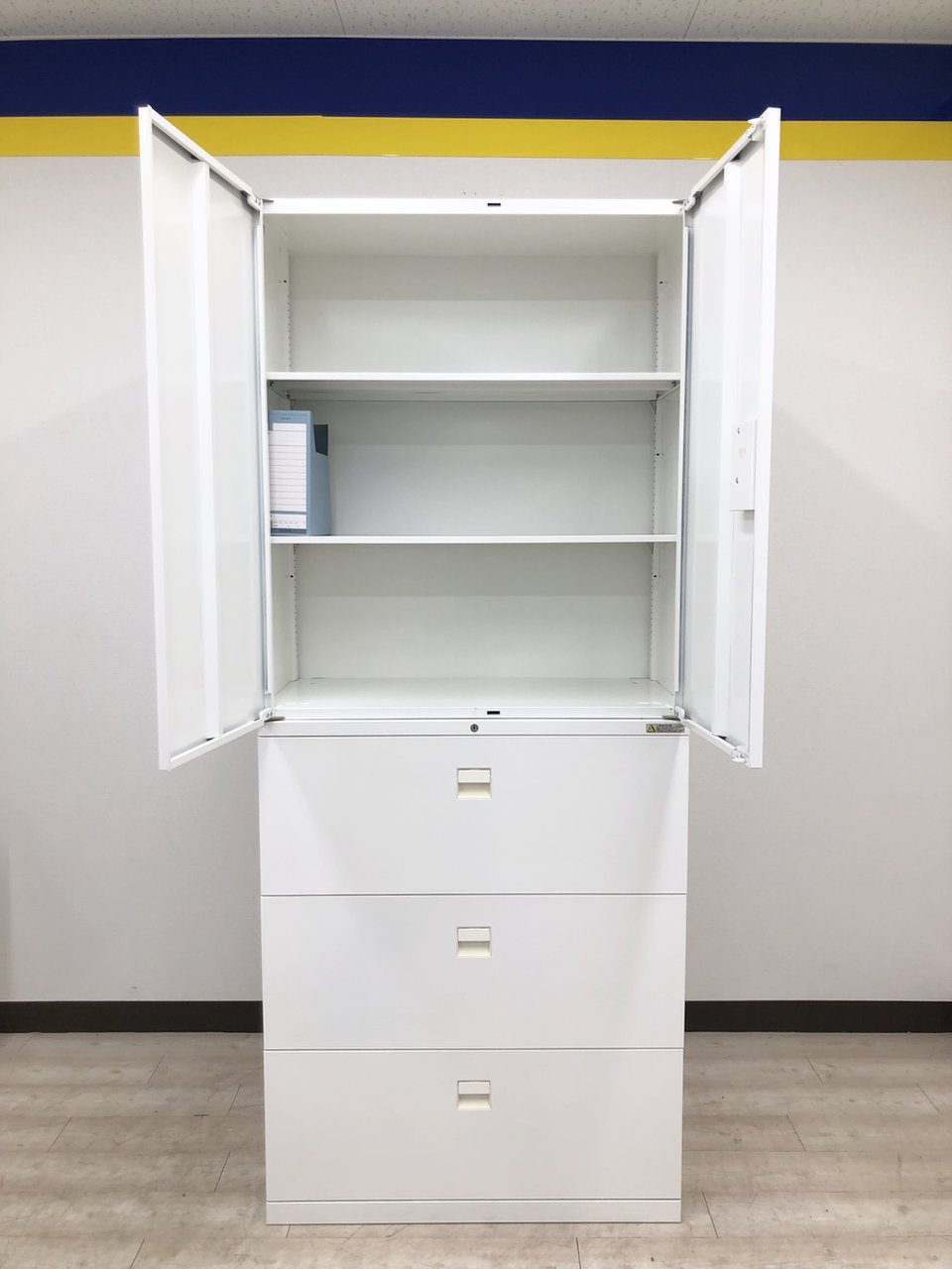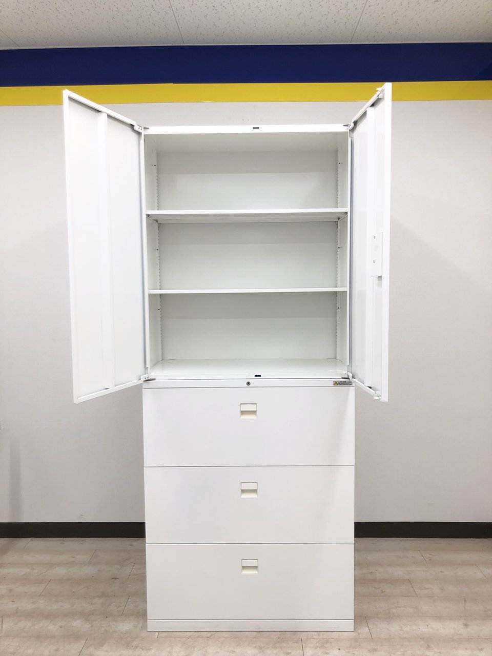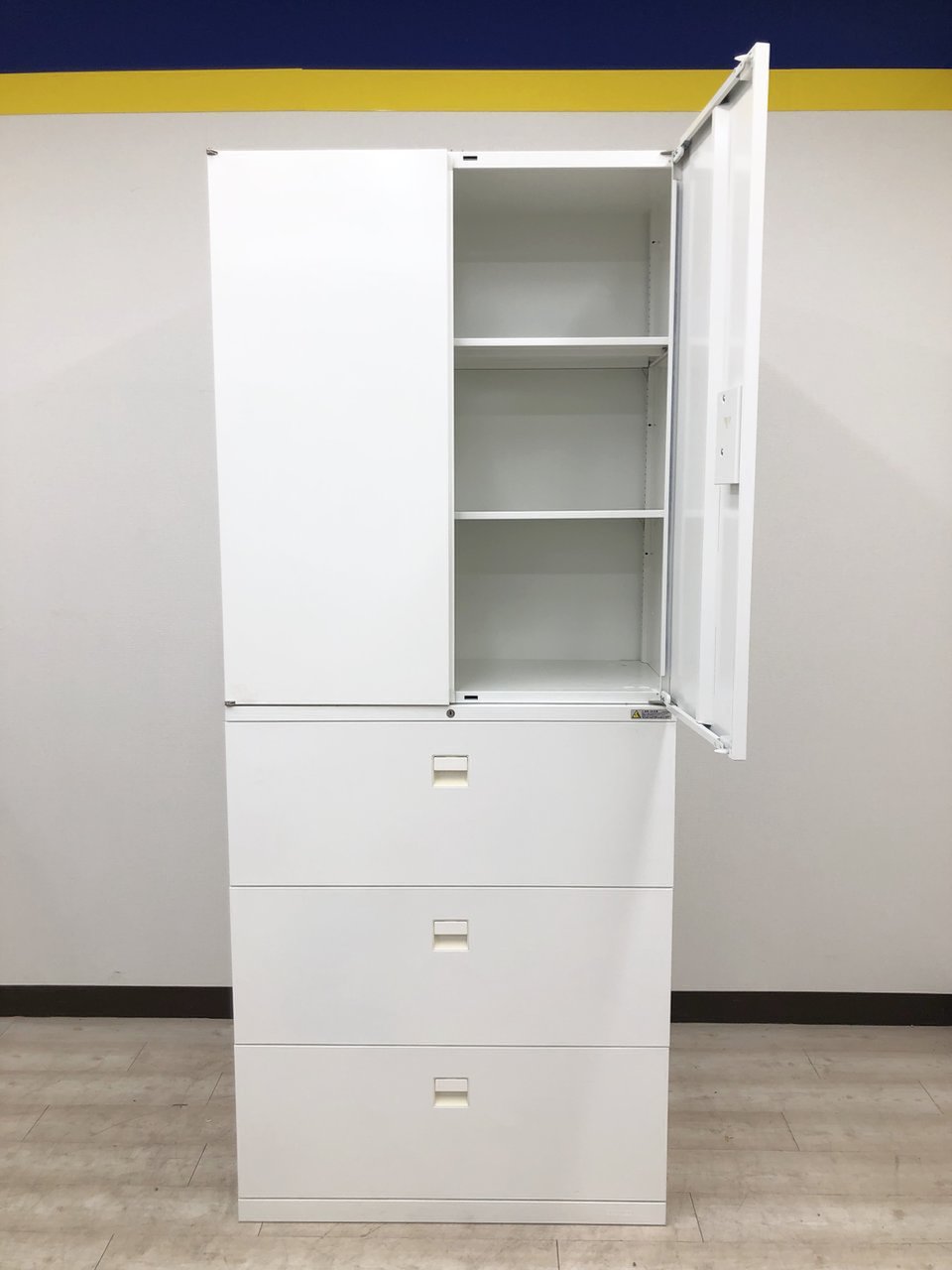 - 一部不具合ありそ引出の開閉不可、施錠不可、棚板無しといったの書庫の本来の効用を果たすための機能以外の一部が使用不可(例、扉、引出の開閉がしづらいなどがある。 )