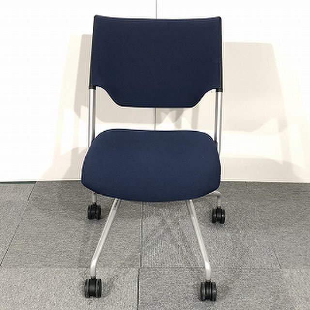肉厚クッションでしっかり座れます|イトーキ製 レクシブシリーズ 高級ネスティングチェア ネイビーブルー
