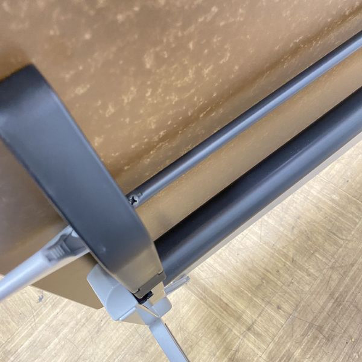 - 一部不具合あり天板歪み、アジャスター無し、キャスター使用不可ようなそのテーブルの本来の効用を果たすための機能以外の一部が使用不可な状態。(例、キャスターロッ ク機能使用不可、棚板無し等がある。)