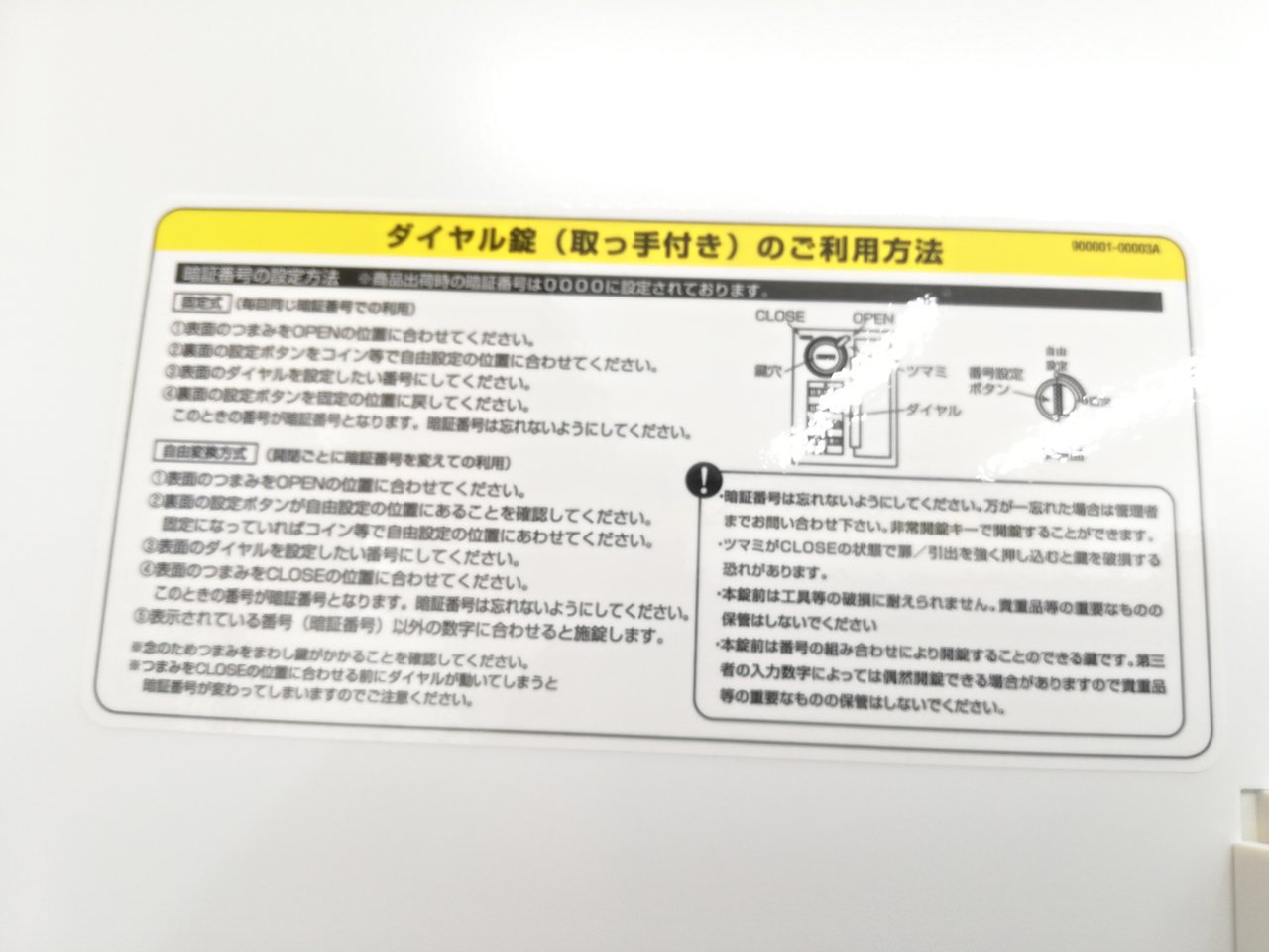 - 一部不具合あり扉の開閉不可、施錠不可といったそのロッカーの本来の効用を果たすための機能以外の一部が使用不可な状態※扉の開閉がしづらい等がある。