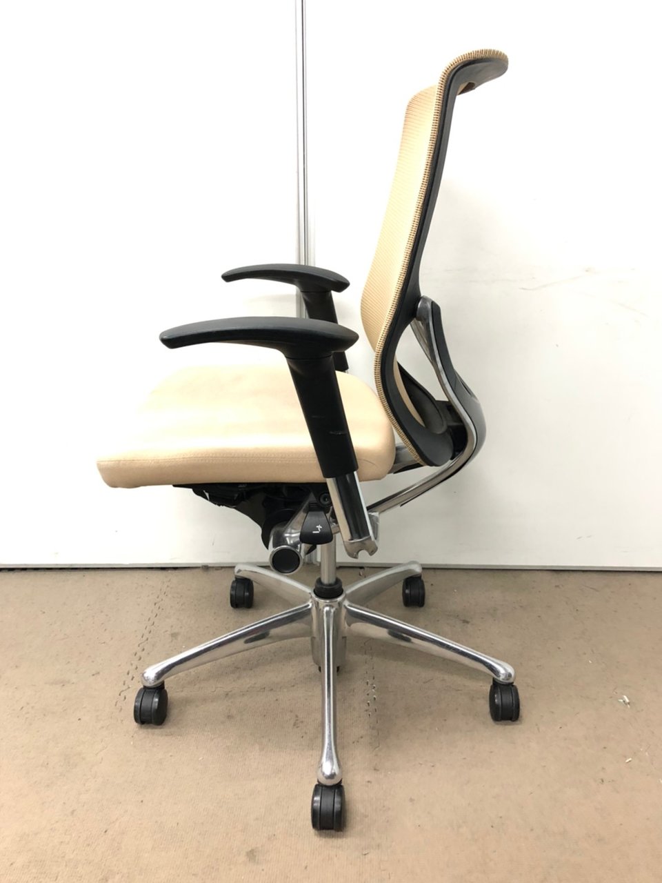 【高級チェア】【残り2点!】オカムラ製 ゼファー アイボリーカラー 肘付きハイバックチェア【可動肘】【背面メッシュ】