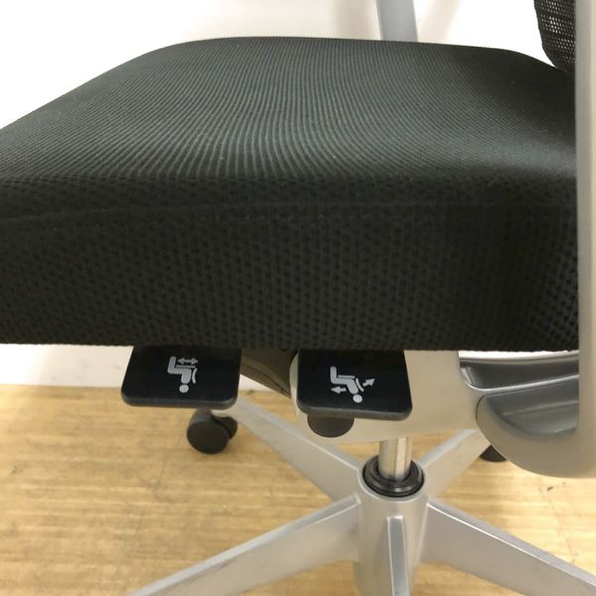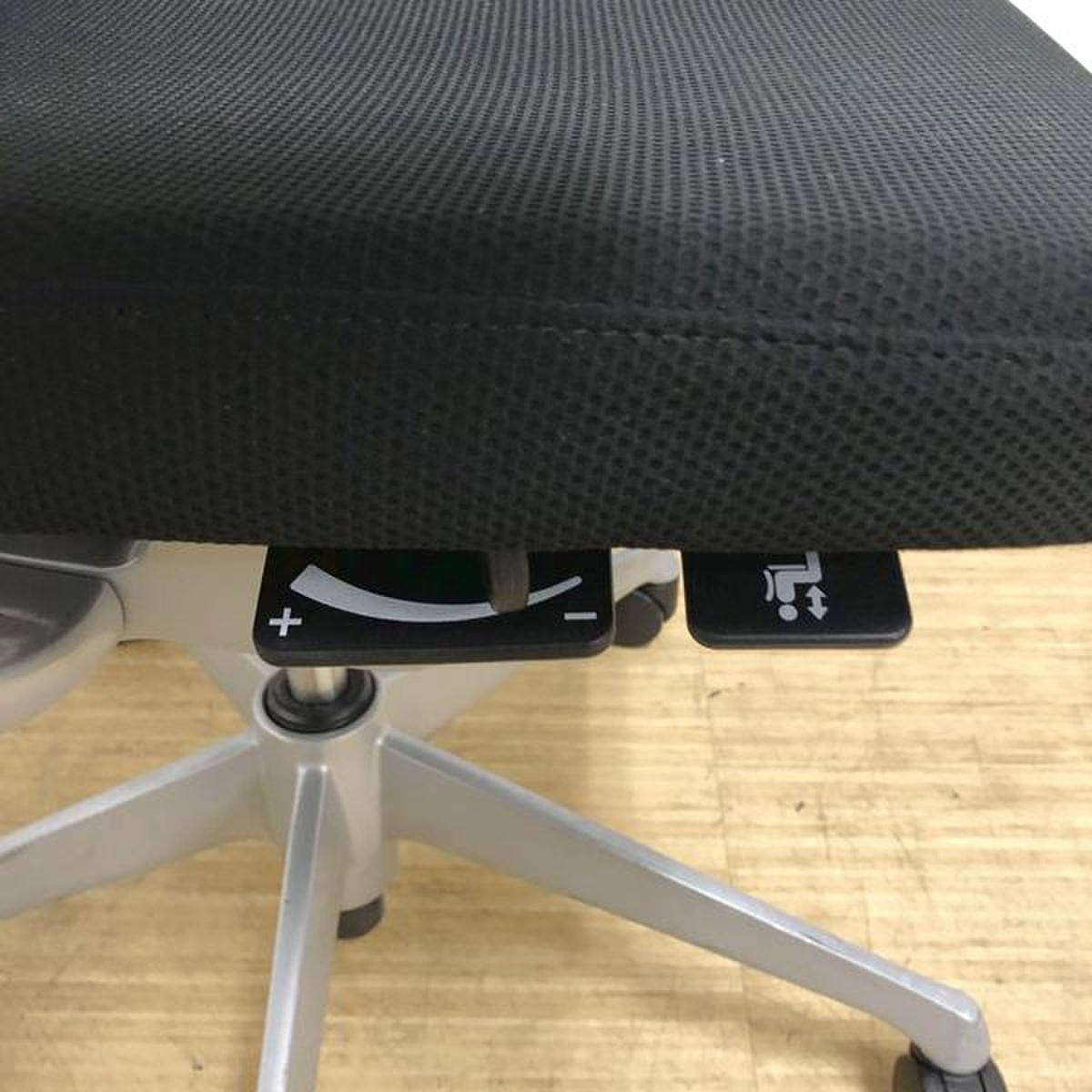 座面の高さや前後などの基本的な調整レバーが座面裏の前方に集約されており、姿勢を変えずに調節ができます。