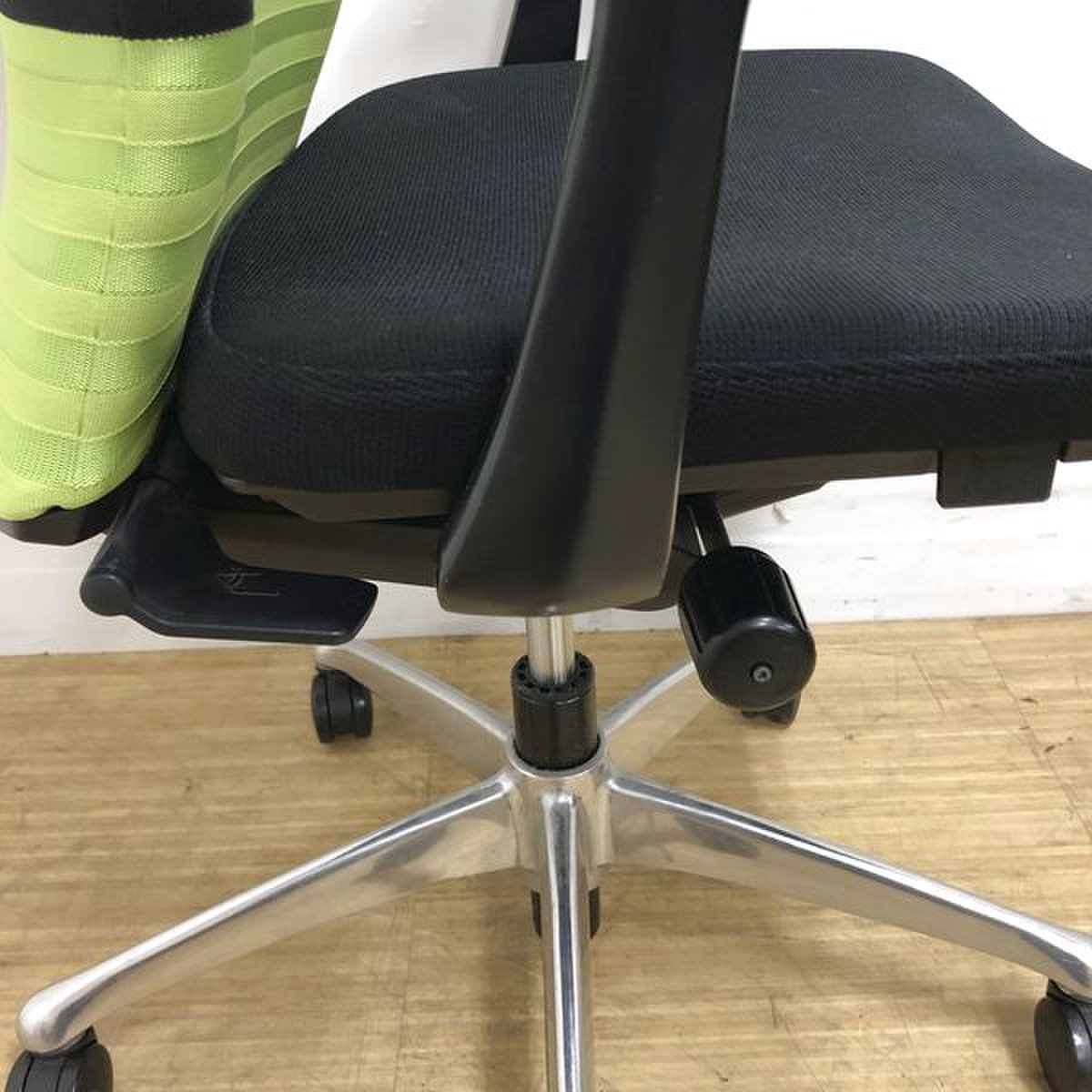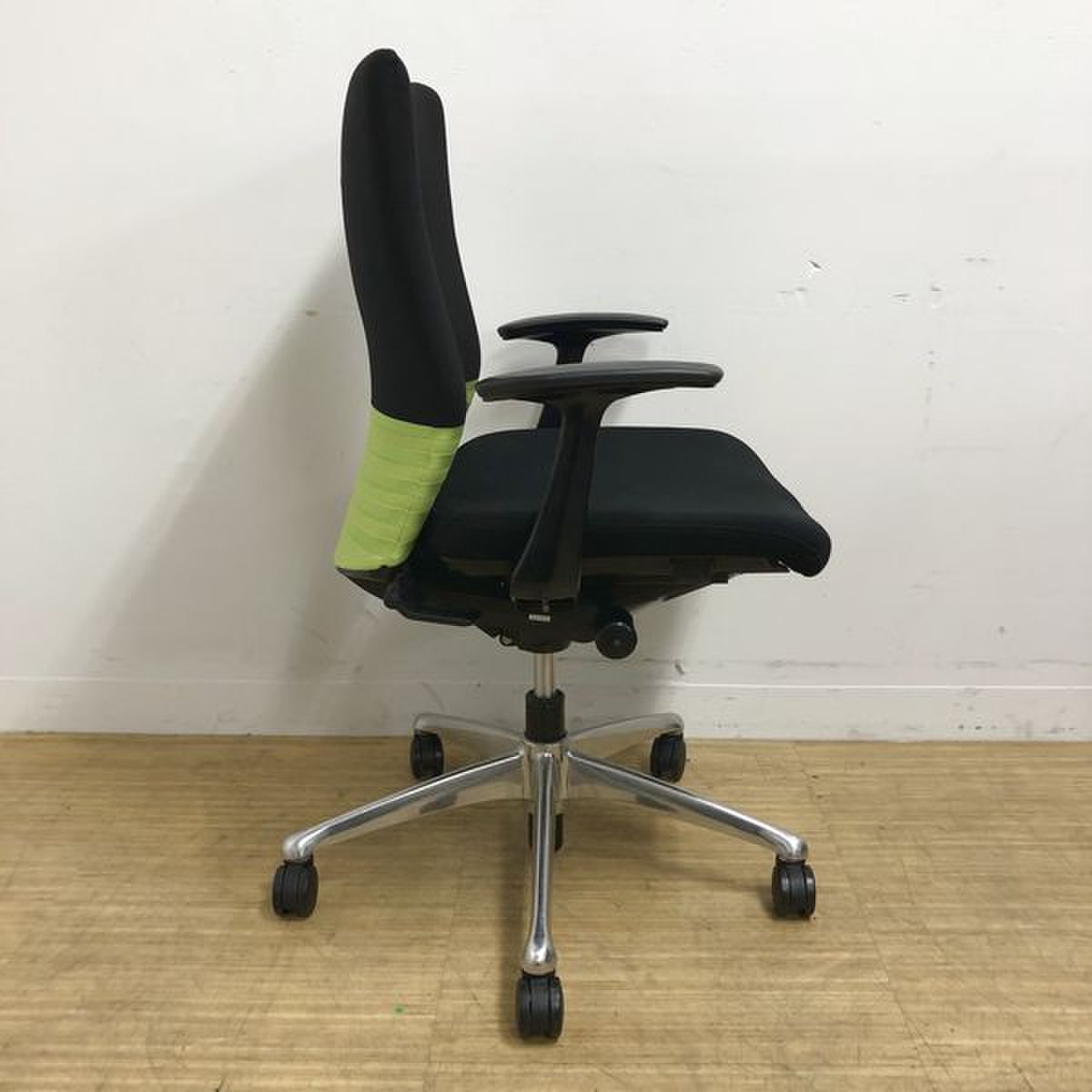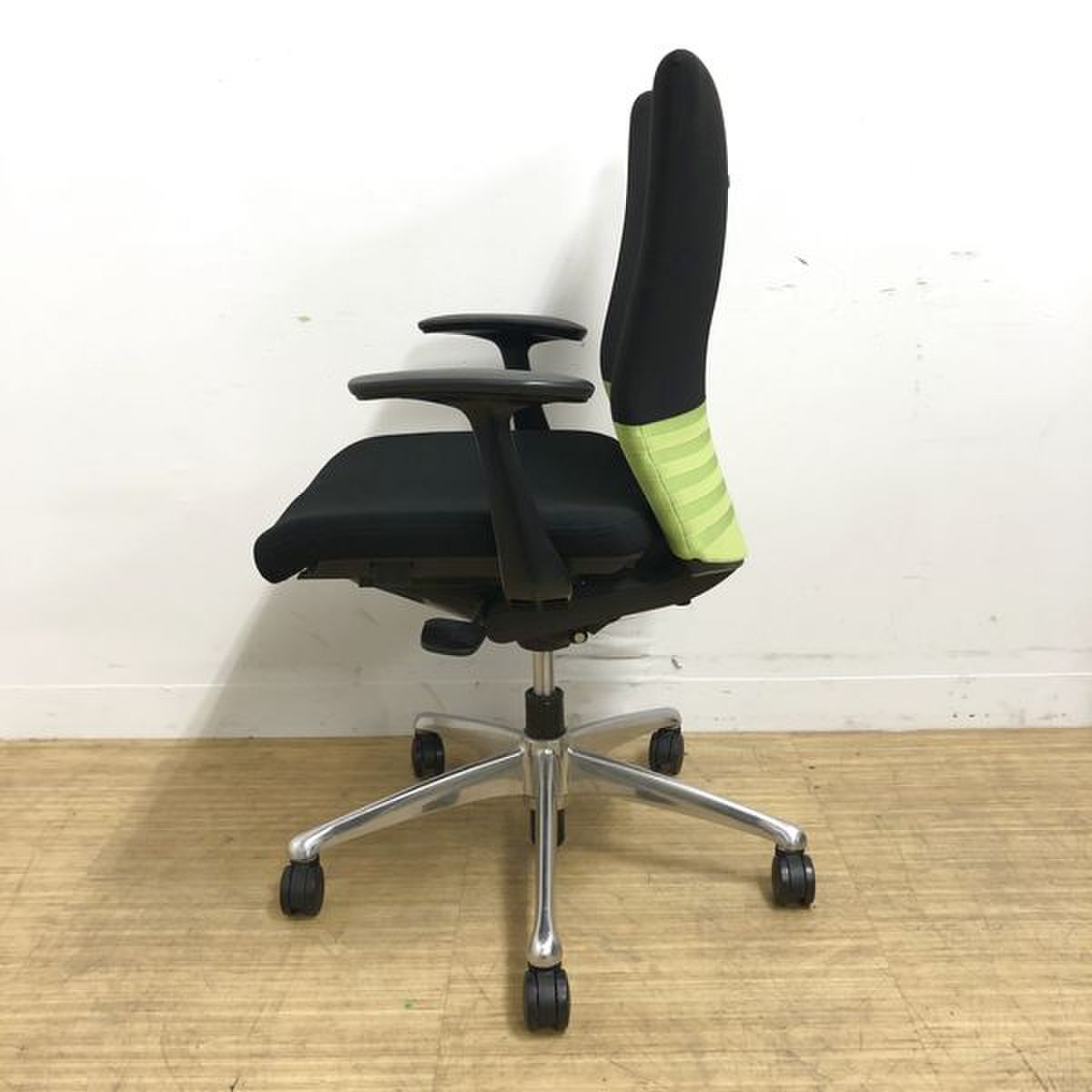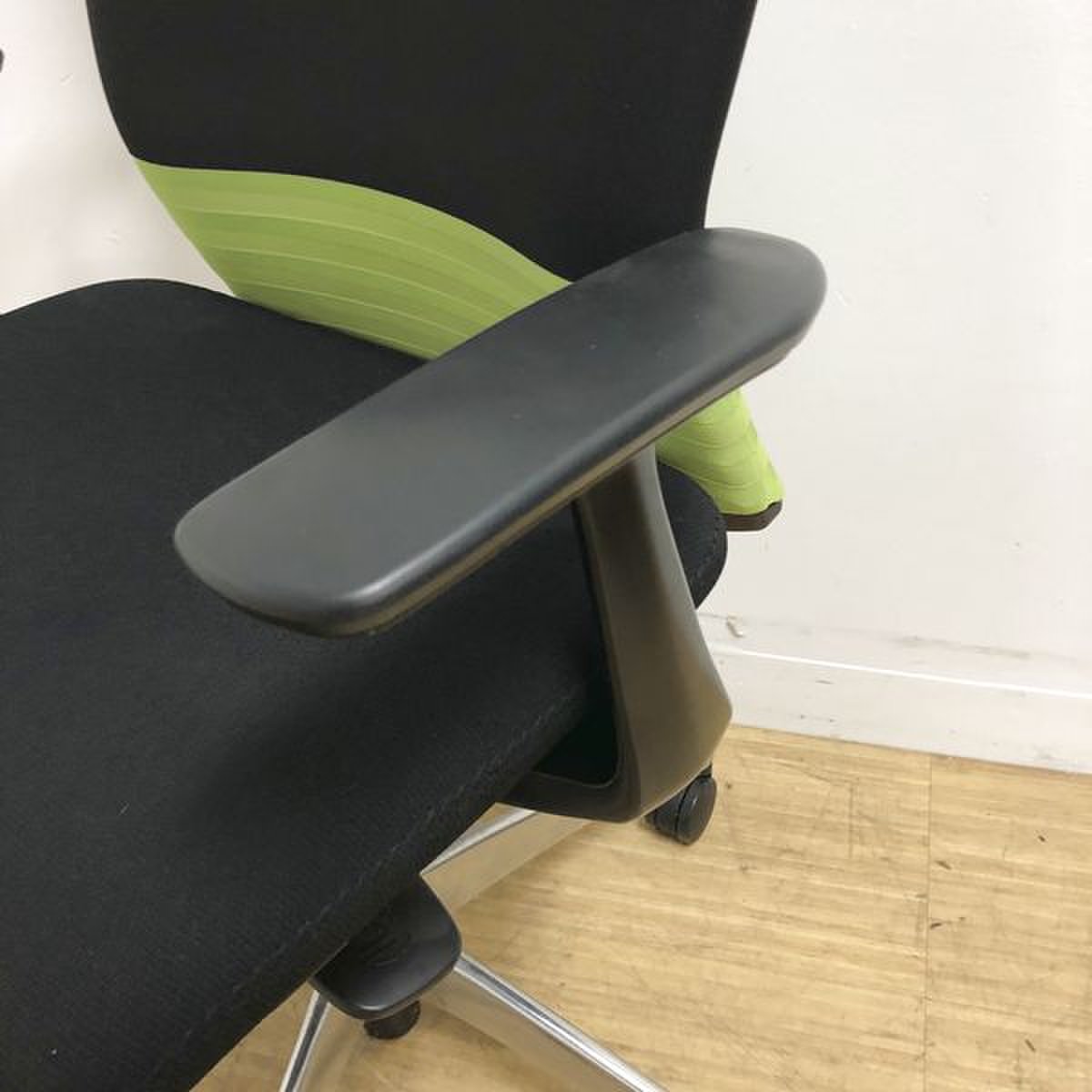 【人気商品】【残り3脚】オカムラ製 フィーゴ ブラック×グリーンカラー【肘付き】【リクライニング】