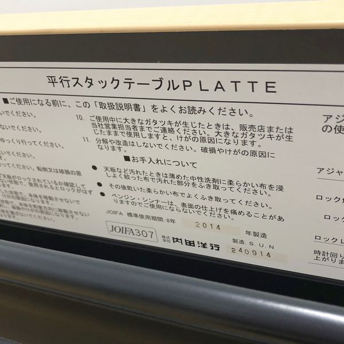 - 一部不具合あり天板歪み、アジャスター無し、キャスター使用不可ようなそのテーブルの本来の効用を果たすための機能以外の一部が使用不可な状態。(例、キャスターロッ ク機能使用不可、棚板無し等がある。)