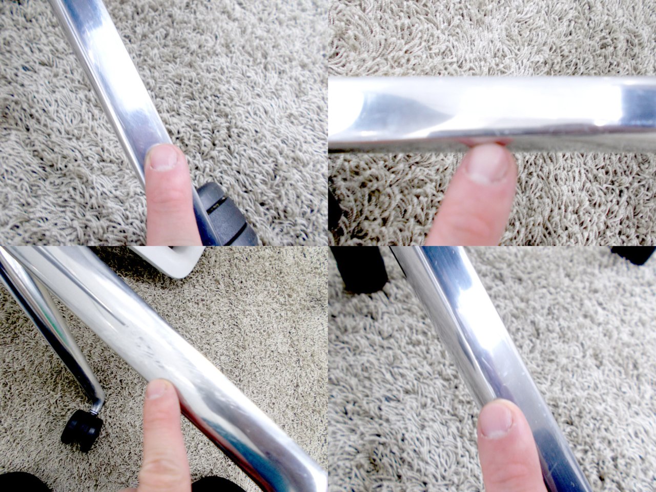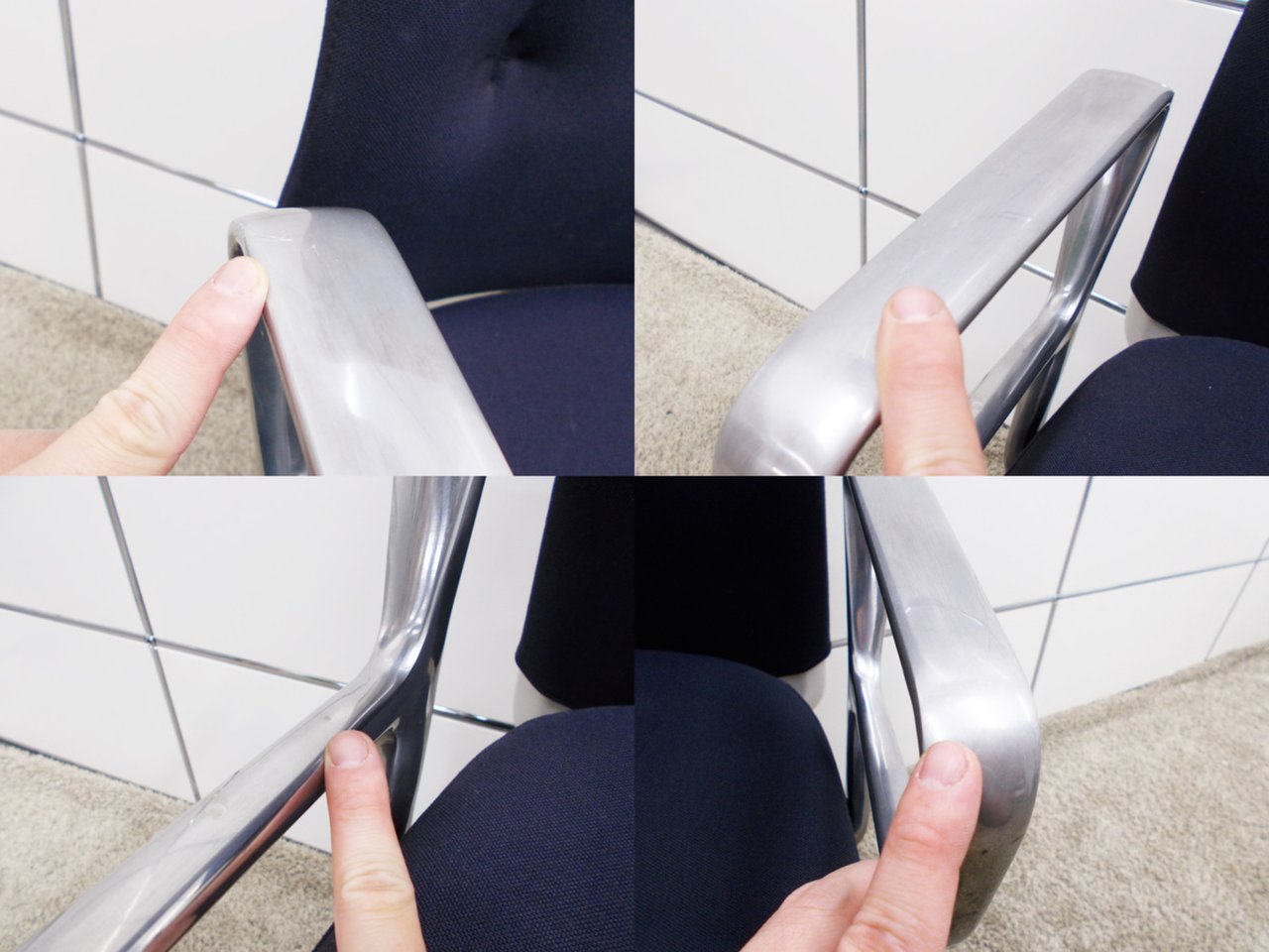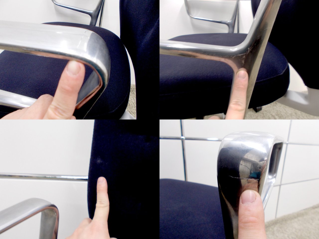 - 目立つ箇所あり傷・破れ・ほつれ・へたり・しわが多数または深い傷・破れ・ほつれ・へたり・しわが一部ある。※座面・背もたれ、シェル、脚部等にある。