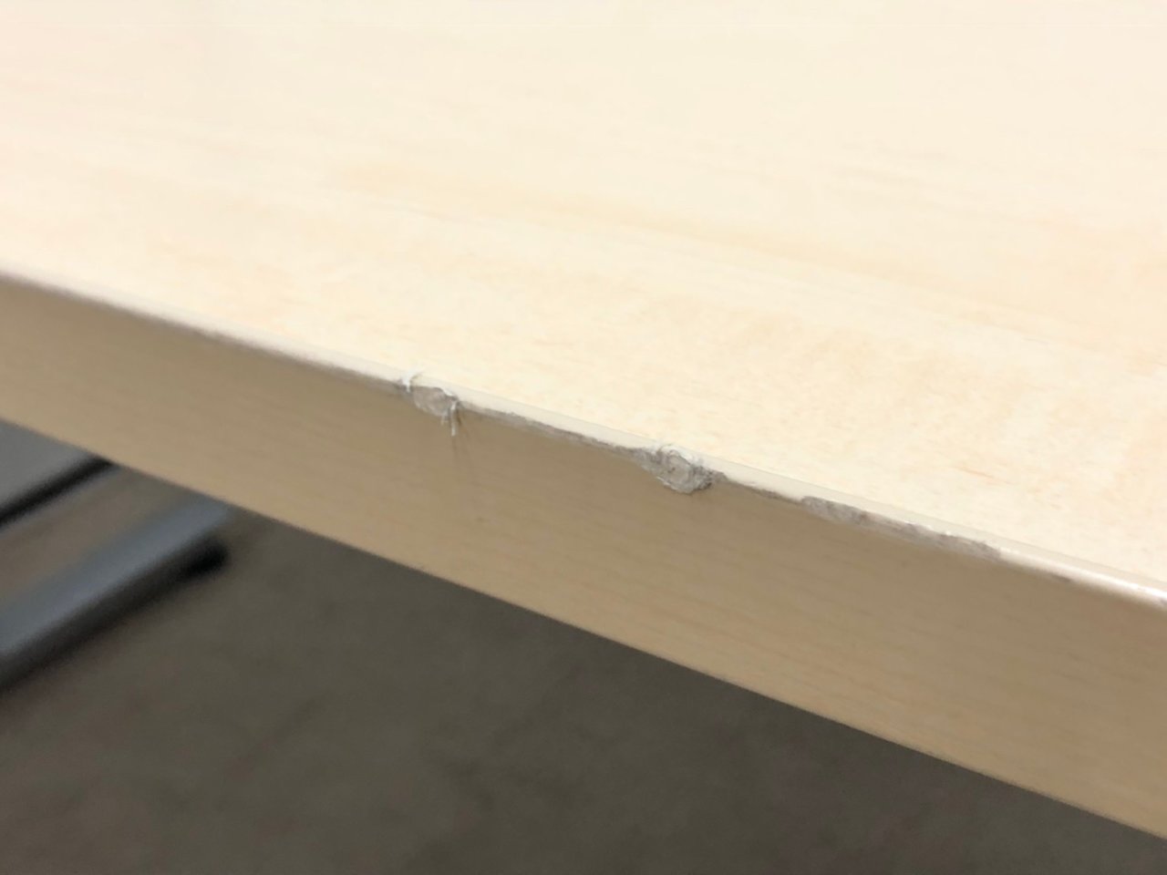 - 壊れている天板歪み、アジャスター無し、キャスター使用不可のようにそのテーブルの本来の効用を果たすための機能に不具合がある。