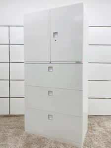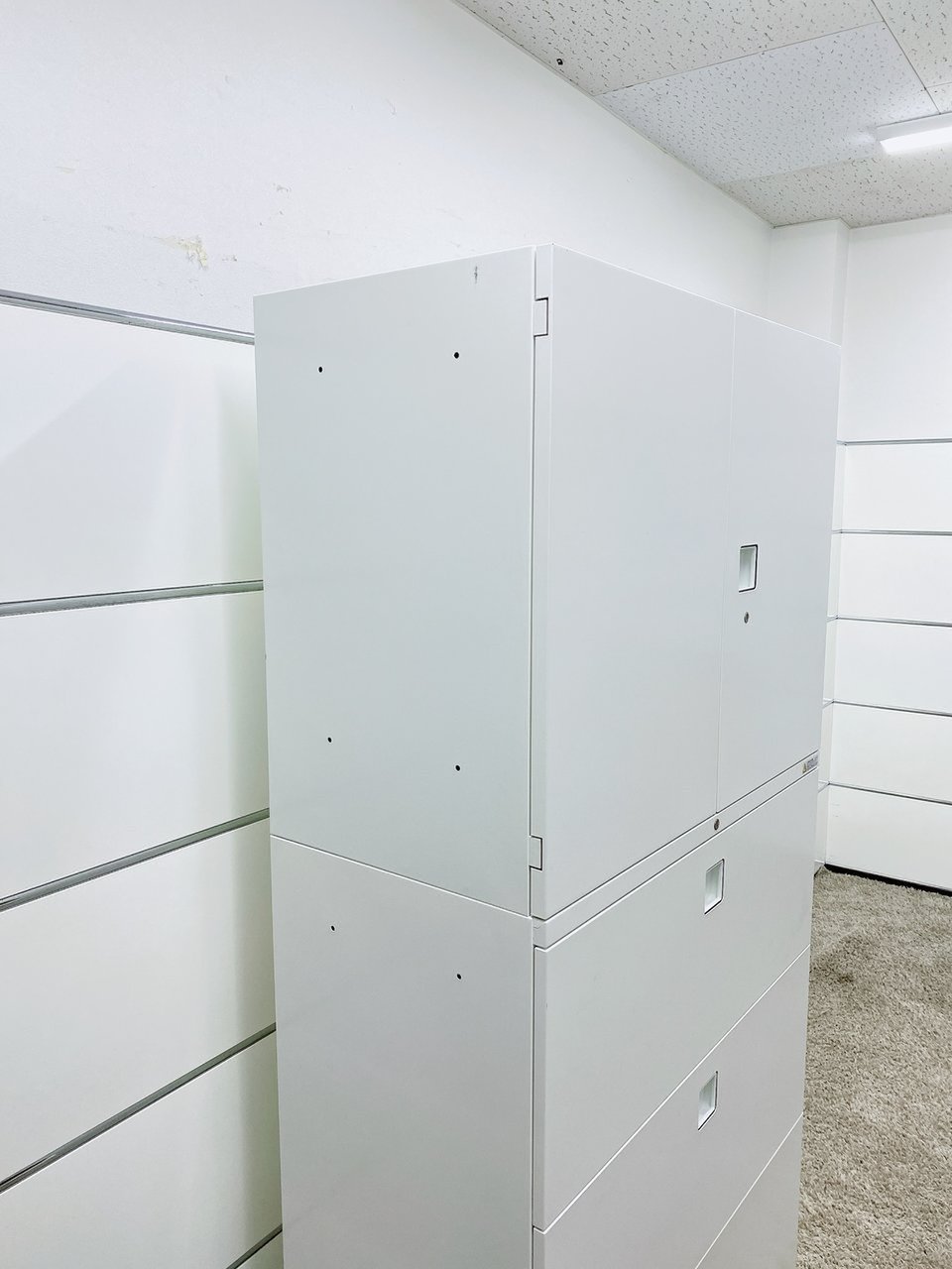 【上下書庫セット】【両開き(上)×3段ラテラル(下)】【オカムラ】【レクトライン】【ホワイト】【4台】