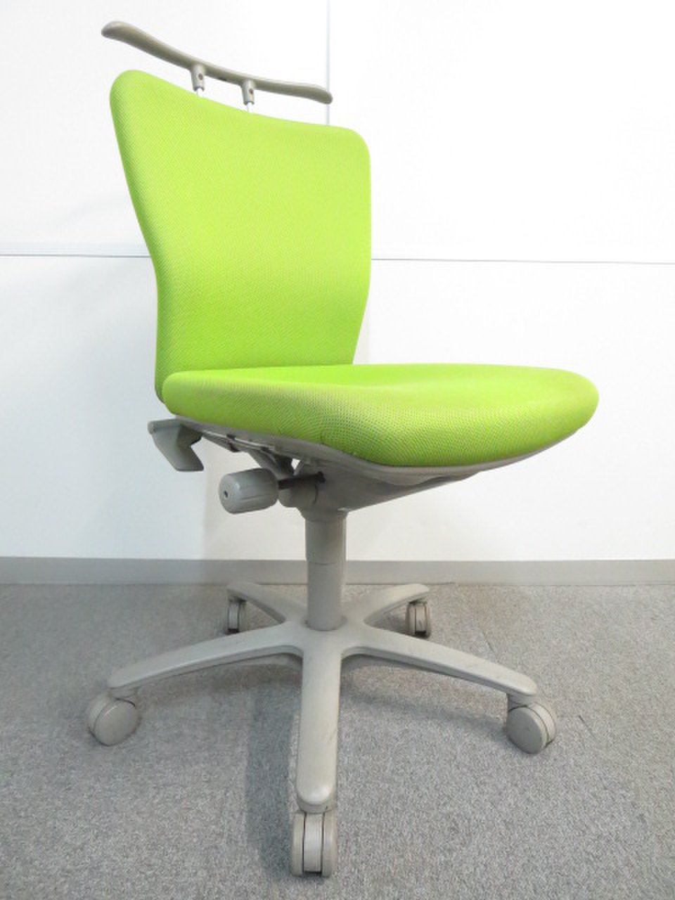 人間工学を基に設計されたロークラスチェア!ライトグリーンカラーでオフィスも明るくなります!■オカムラ■コートハンガー■リクライニングロック【値下品】- 日本橋店
