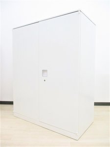 【定価約9万円!!マルチアクセスハンドルで開閉がラクラクです!!ホワイトカラー両開き書庫!!オシャレな天板付き!!】■オカムラ■レクトライン