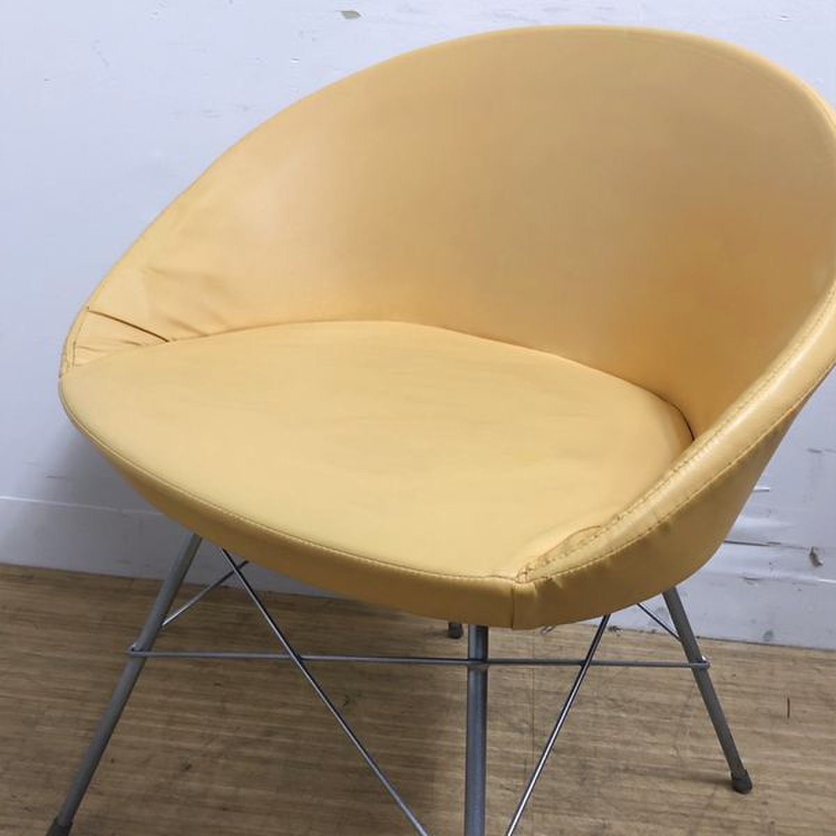 - かなり強い濃い黄ばみ・変色が商品全体にある。(例、座面・背もたれ、脚部等にある。)