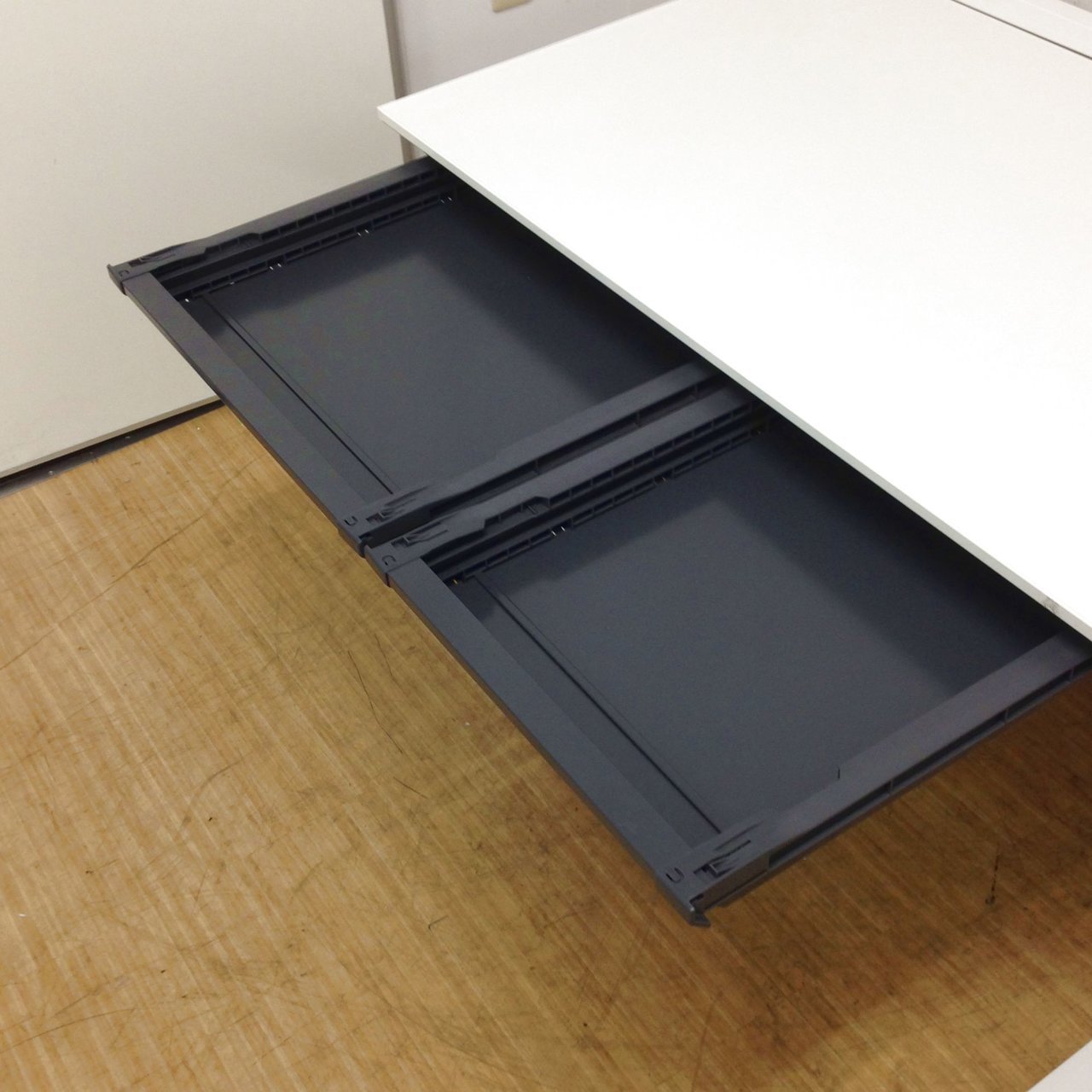 珍しい引出ラッチ付きの平机です。 暇な時は配線カバーをパカパカしてみたり、 ラッチをカチカチしてみたり、 遊び心も忘れないデスクです。- 立川・八王子店