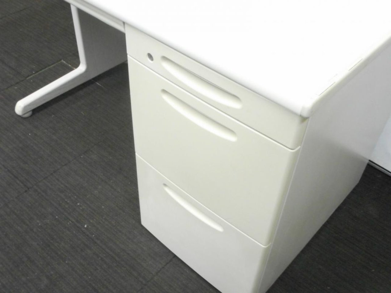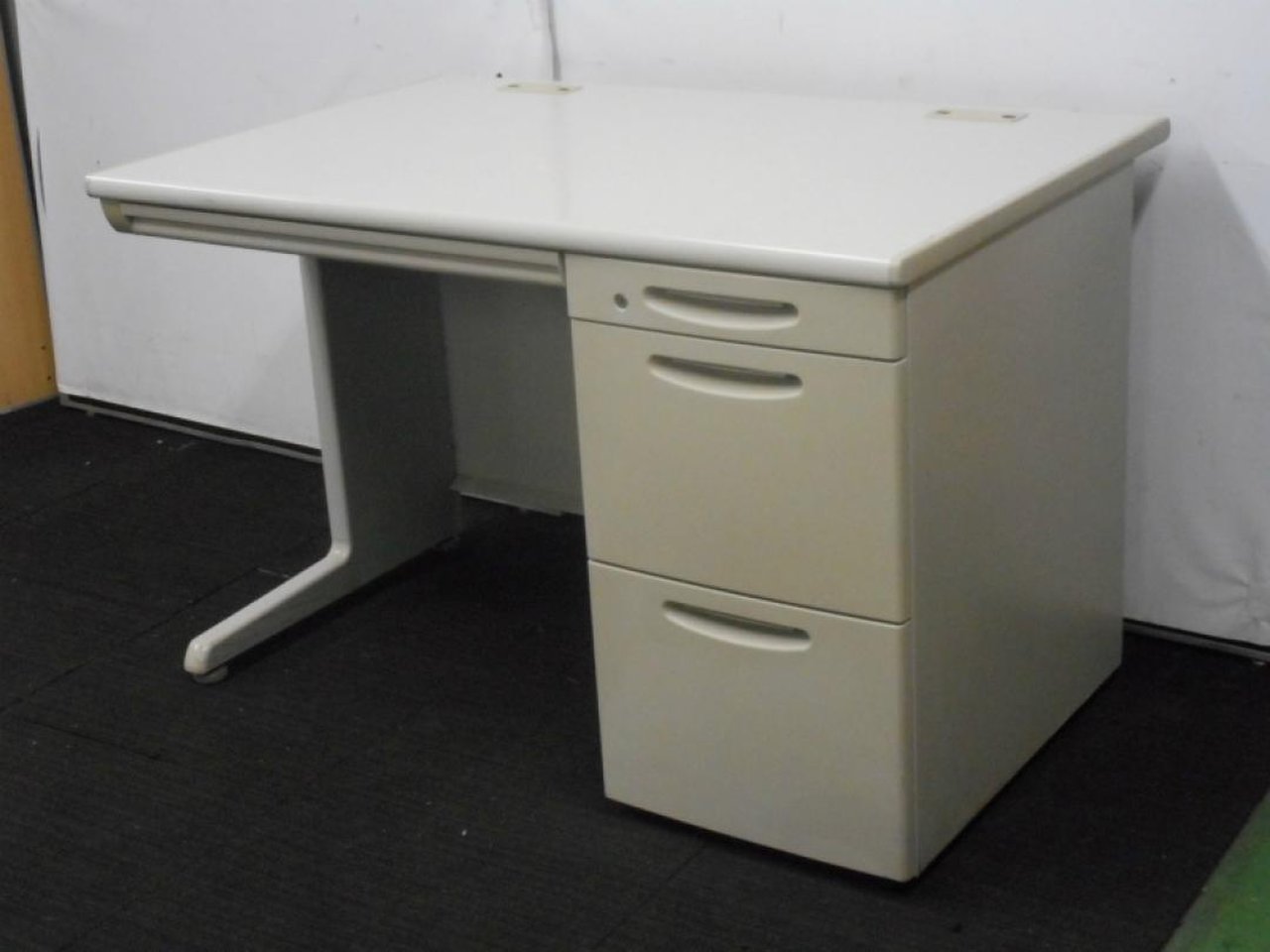 【Aランク】【状態良好品!】 小スペースにオススメのコンパクトサイズオフィスデスク! 3段引き出し付きで収納力も抜群です!