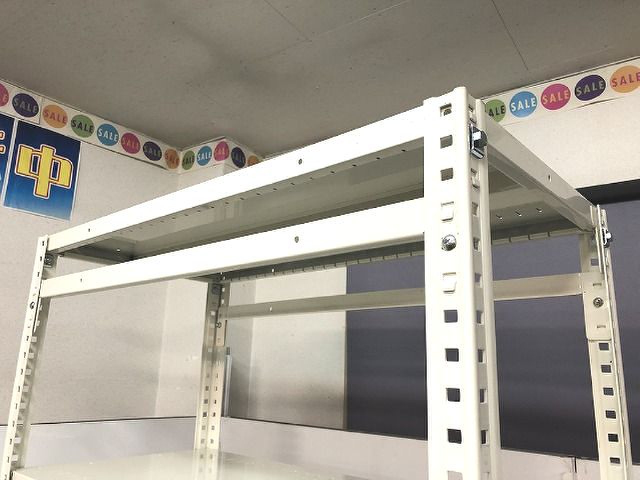 - 一部不具合あり棚板無しといったその物品棚の本来の効用を果たすための機能以外の一部が使用不可な状態。