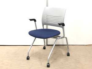 【ミーティングチェア】オカムラ製 エレナⅡ ネスティングチェア 肘付き【折畳可能】