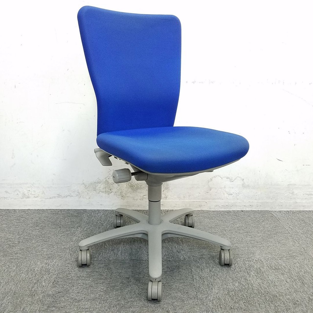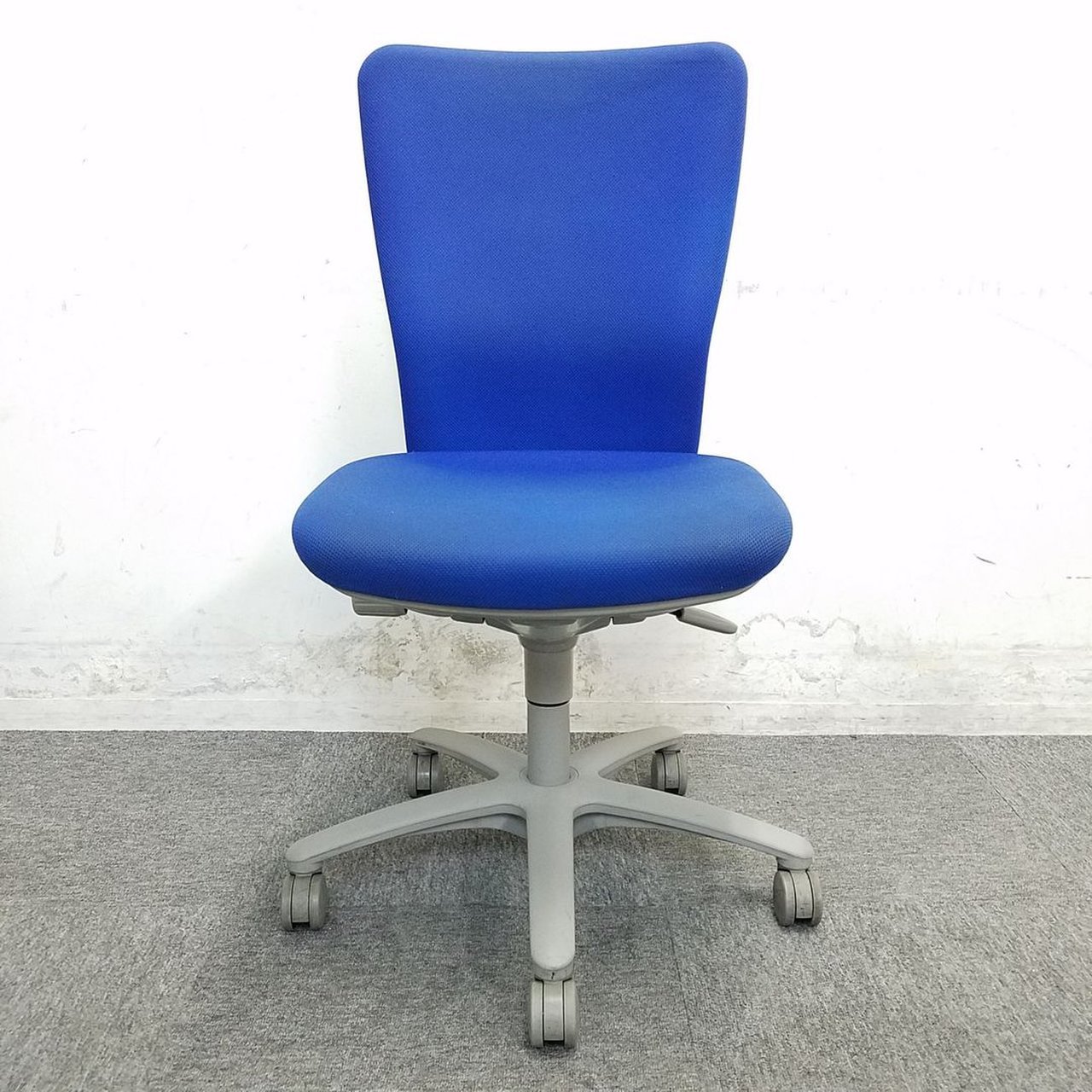【肘無】【ローコストチェアの決定版!】 オカムラ/カロッツァ/ブルー/コートハンガー付き