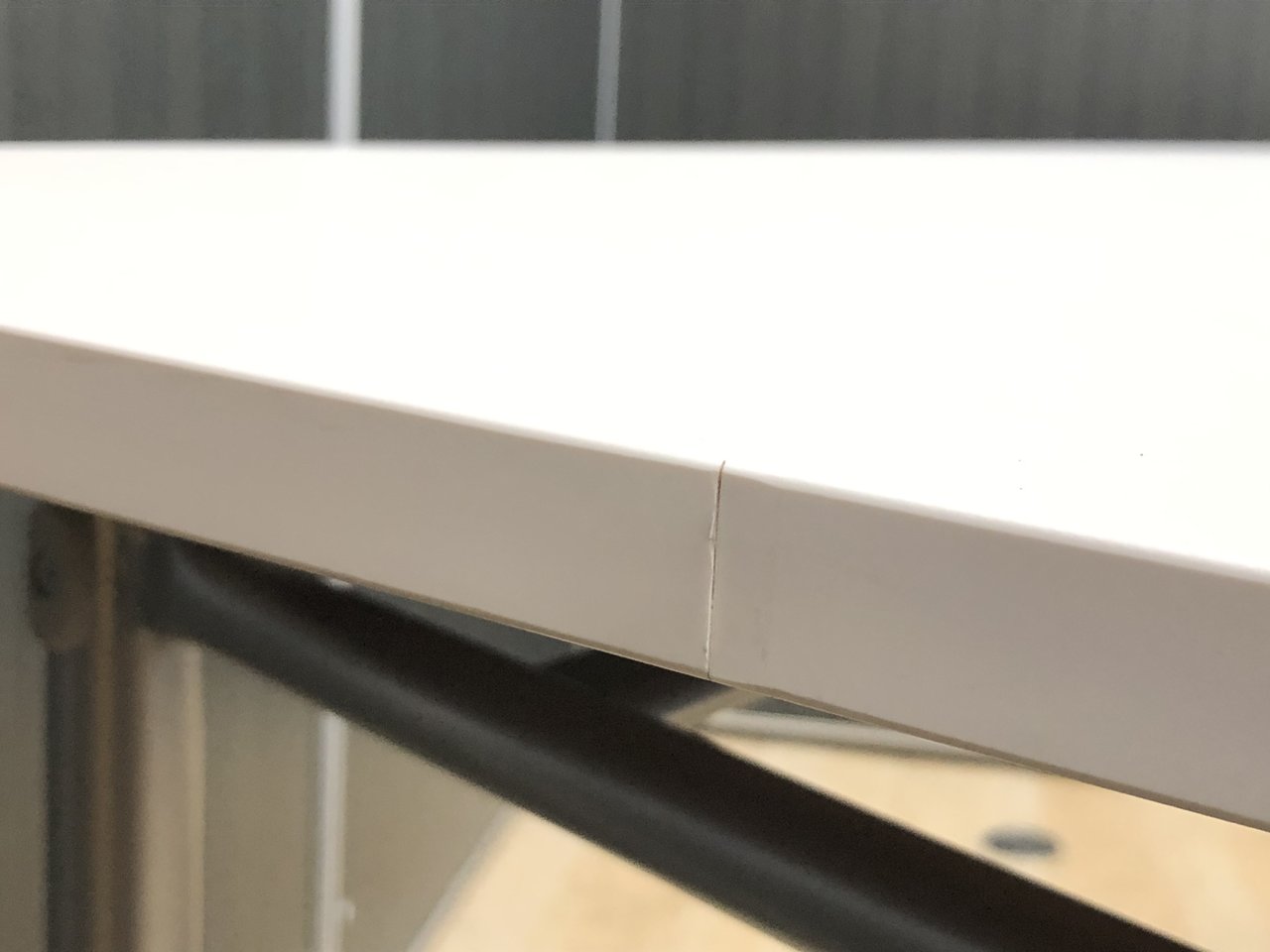 不具合:天板を下ろして使用する時、平行ではなく若干傾きが生じております(5~8mm程)
