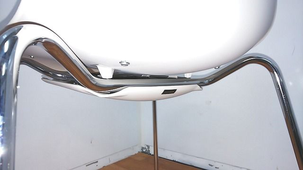 - かなり強い濃い黄ばみ・変色が商品全体にある。(例、座面・背もたれ、脚部等にある。)