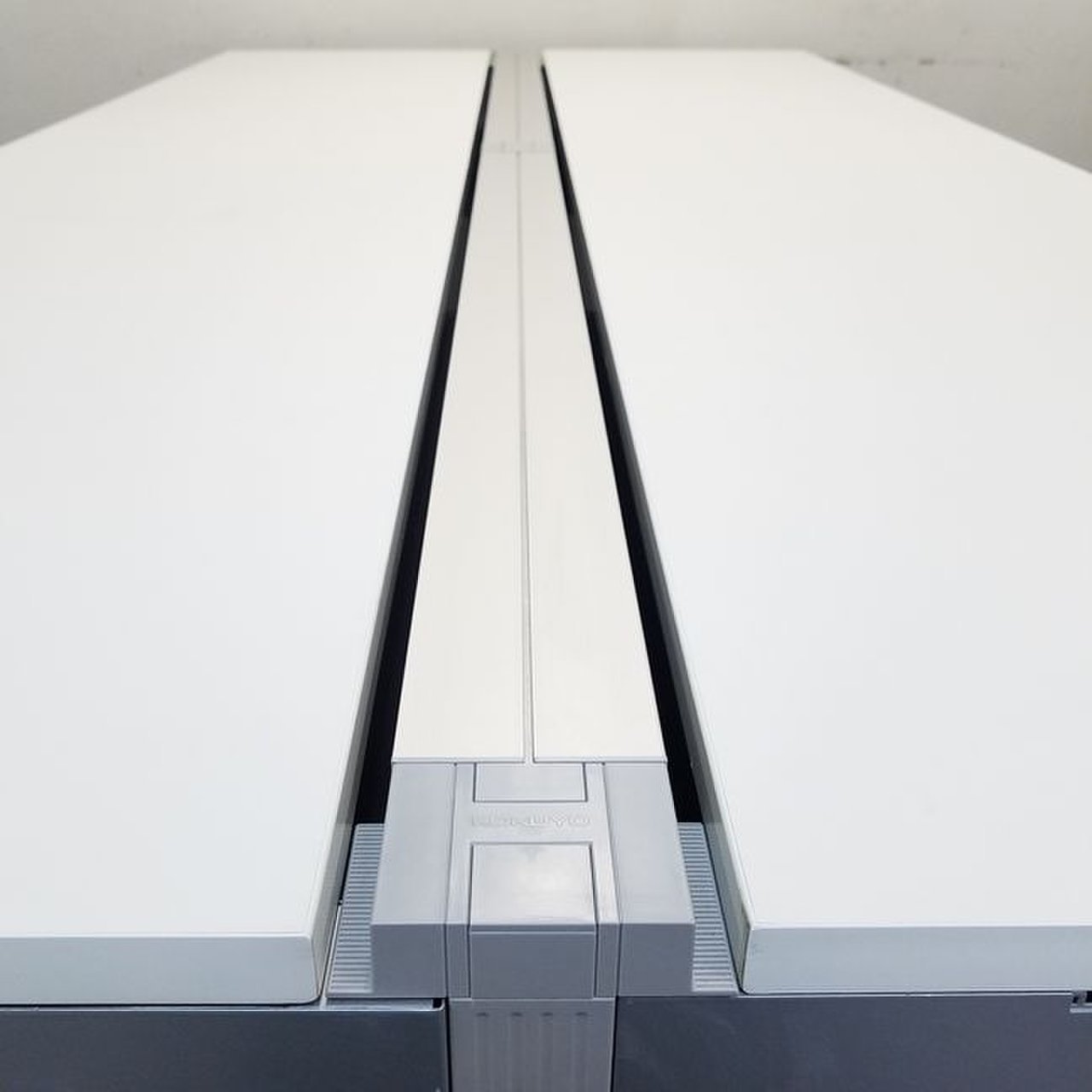 天板がホワイトカラーで脚がシルバーパネルの脚です。