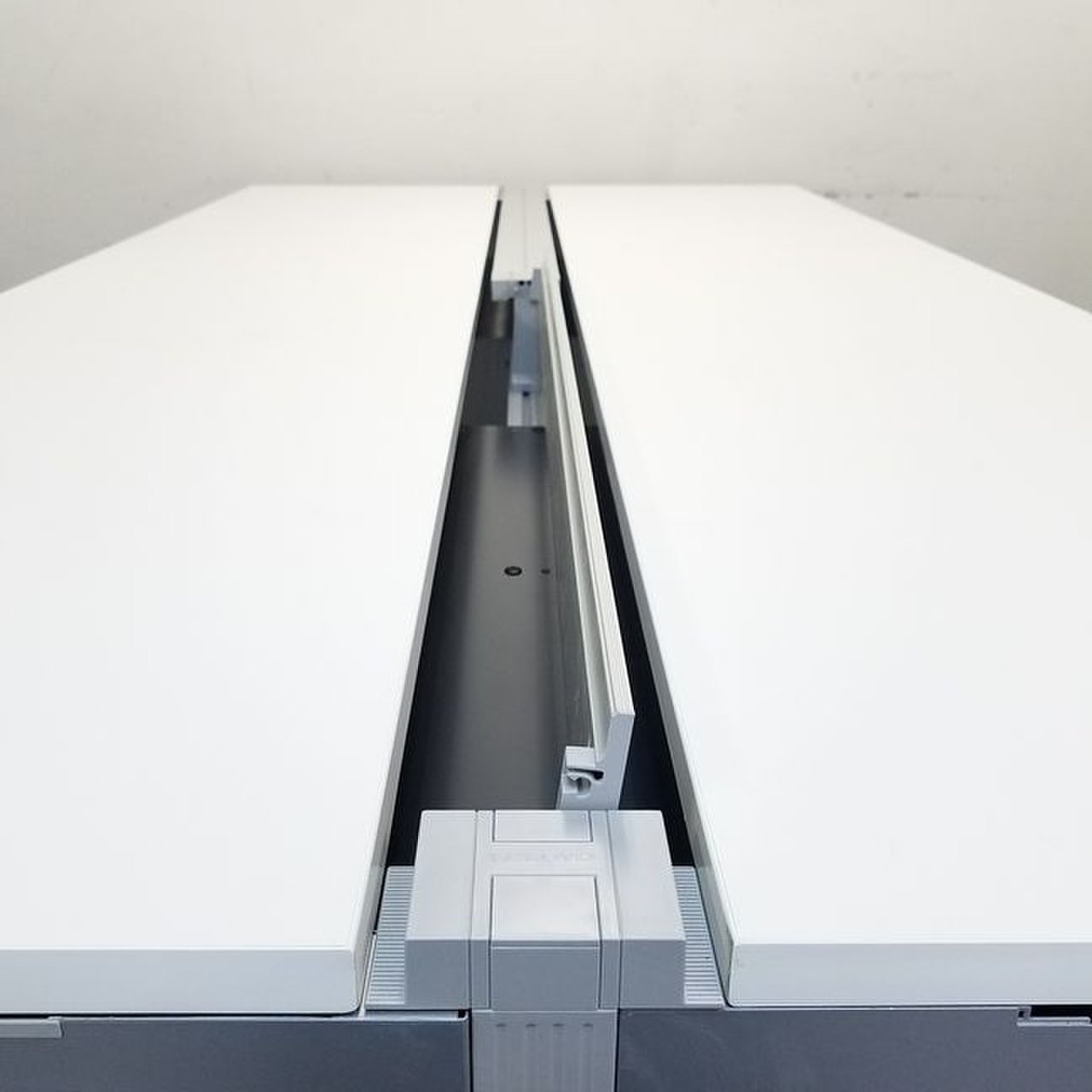 天板がホワイトカラーで脚がシルバーパネルの脚です。