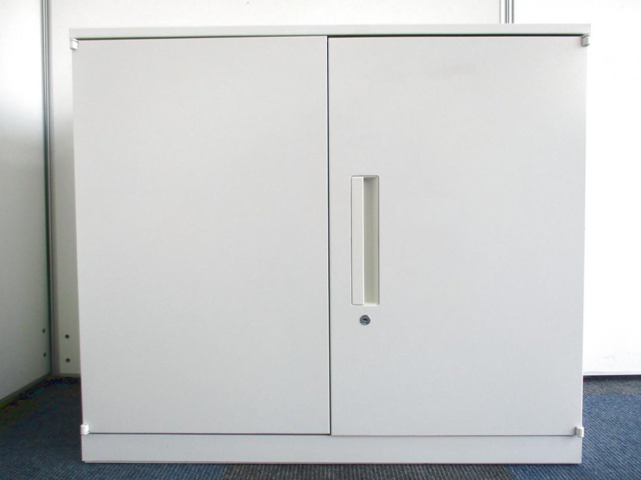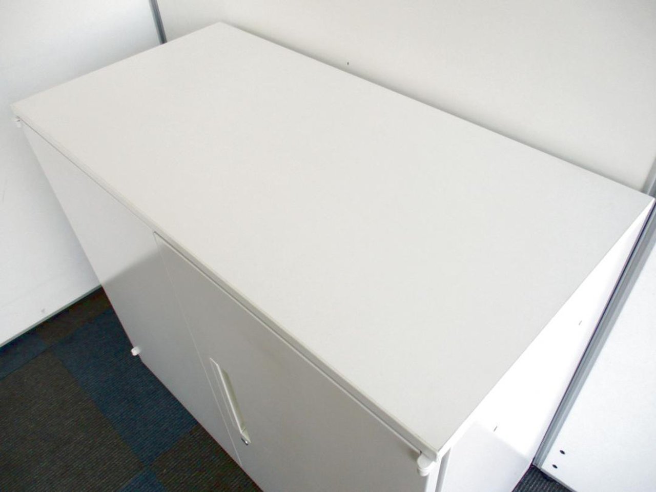 腰高サイズの両開き書庫入荷!取っ手が上部にあるので開けやすい構造です。|ホワイト|書棚 本棚 書類整理