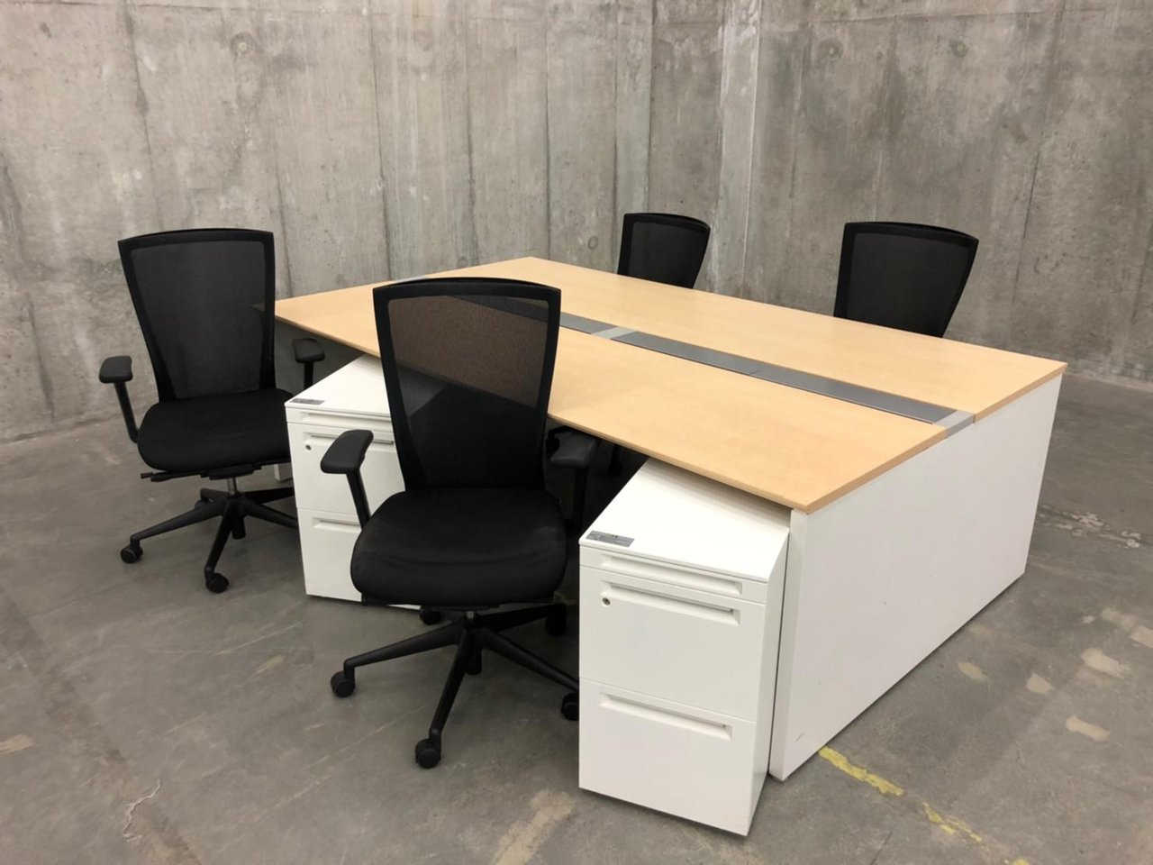 【1000名様分入荷!】美しいナチュラル天板。増設・簡易的なレイアウト変更も可能。使い勝手抜群のフリアドデスク!【倉庫在庫品】