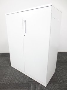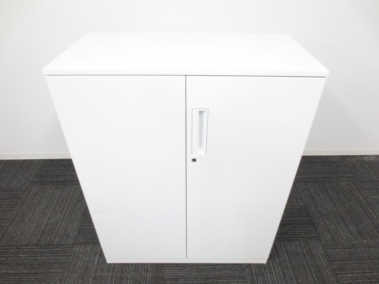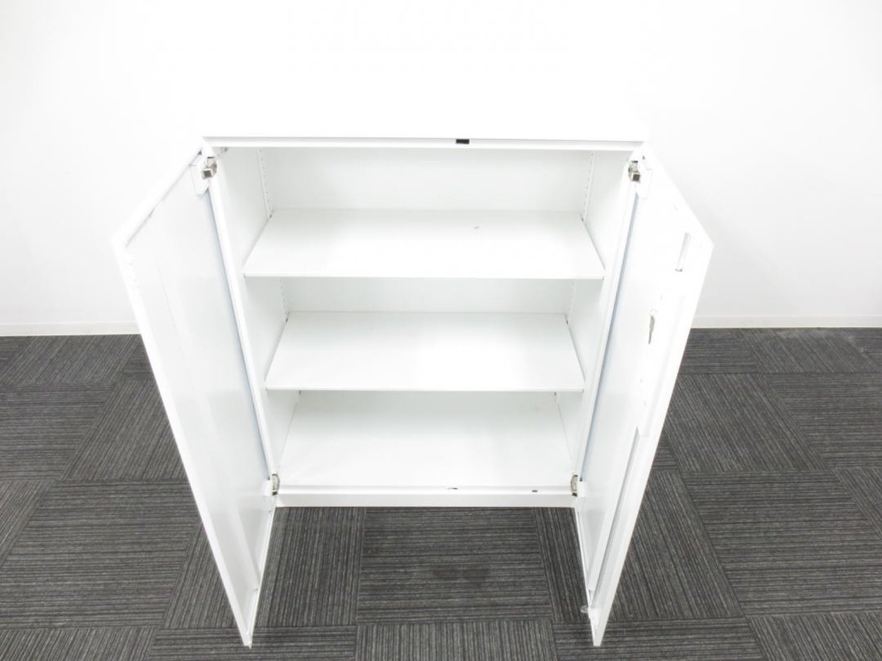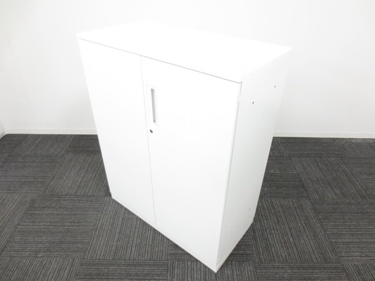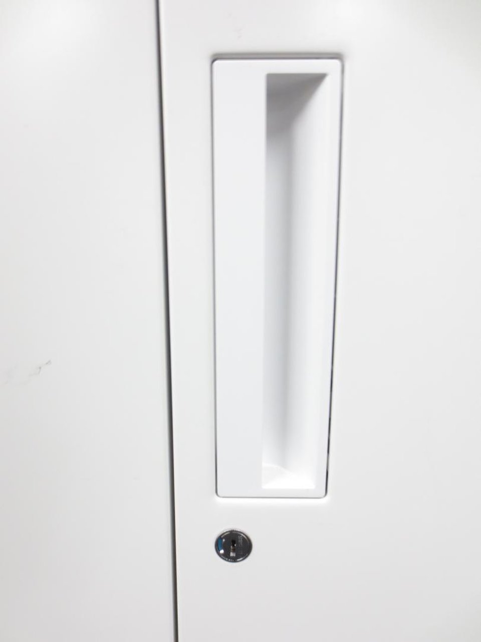 腰高サイズの両開き書庫入荷!取っ手が上部にあるので開けやすい構造です。|ホワイト|書棚 本棚 書類整理