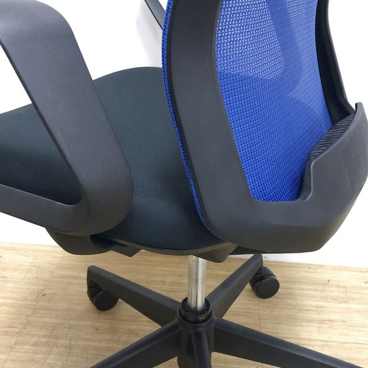 【定番人気のリング肘】肘付きメッシュチェアがこのお値段!ブルー×ブラックのスマートなカラーリング
