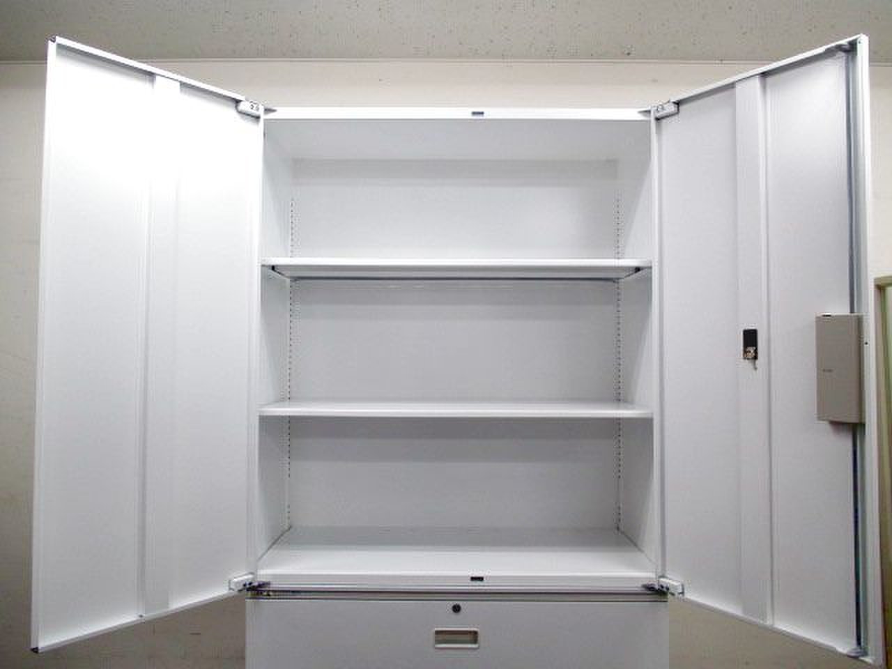 【オフィスを明るくするホワイト】イトーキ製 シンライン 書庫セット(3段ラテラル+両開き)【大容量収納】【シリンダー錠】