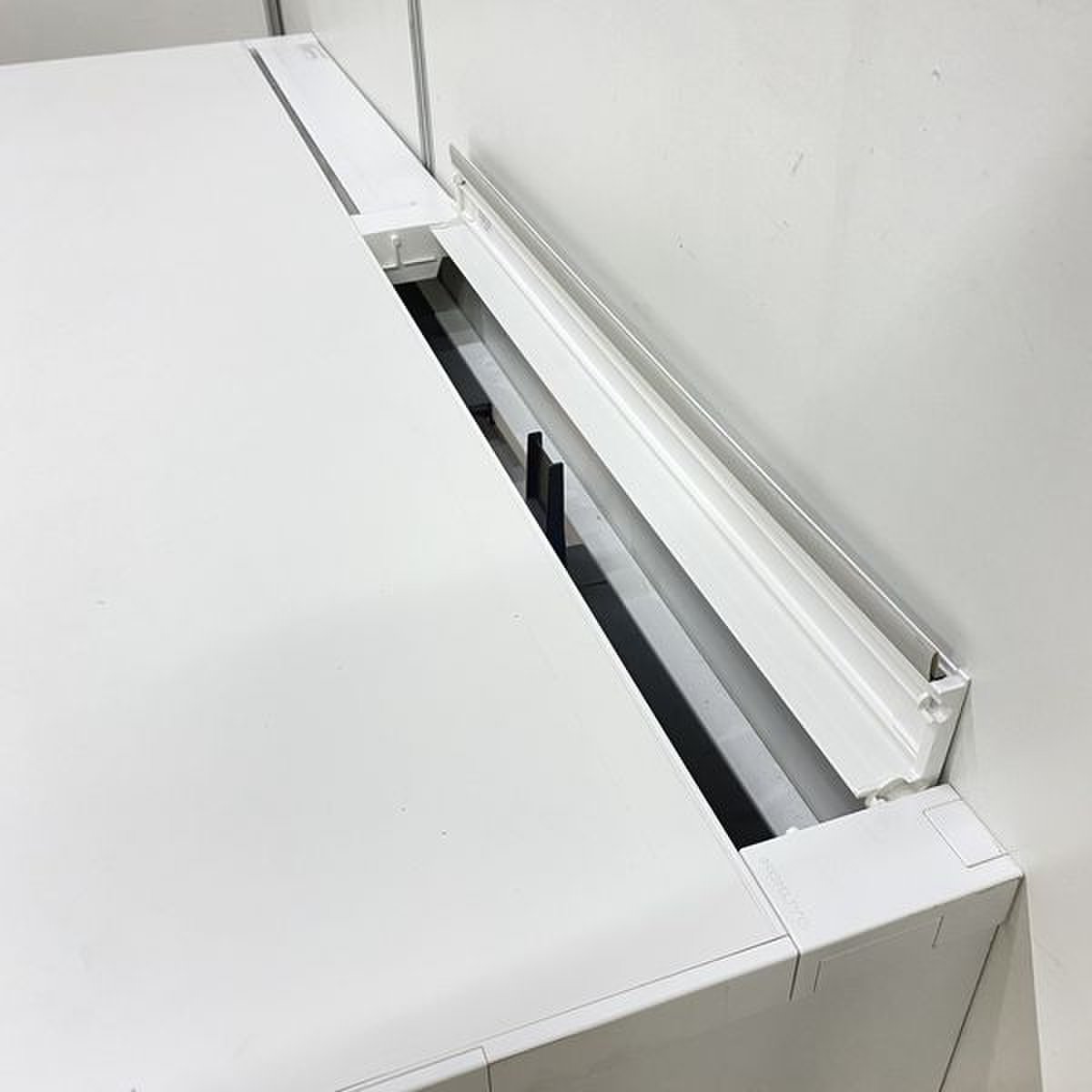 天板奥の両端には配線ダクトがあり、どんなレイアウトでも