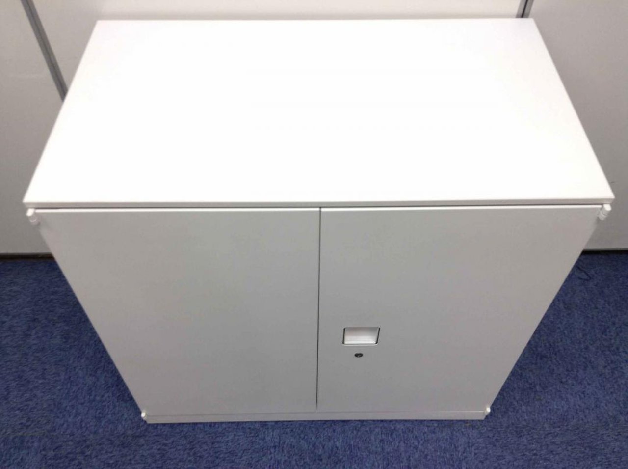 【定価約9万円!!マルチアクセスハンドルで開閉がラクラクです!!ホワイトカラー両開き書庫!!オシャレな天板付き!!】■オカムラ■レクトライン