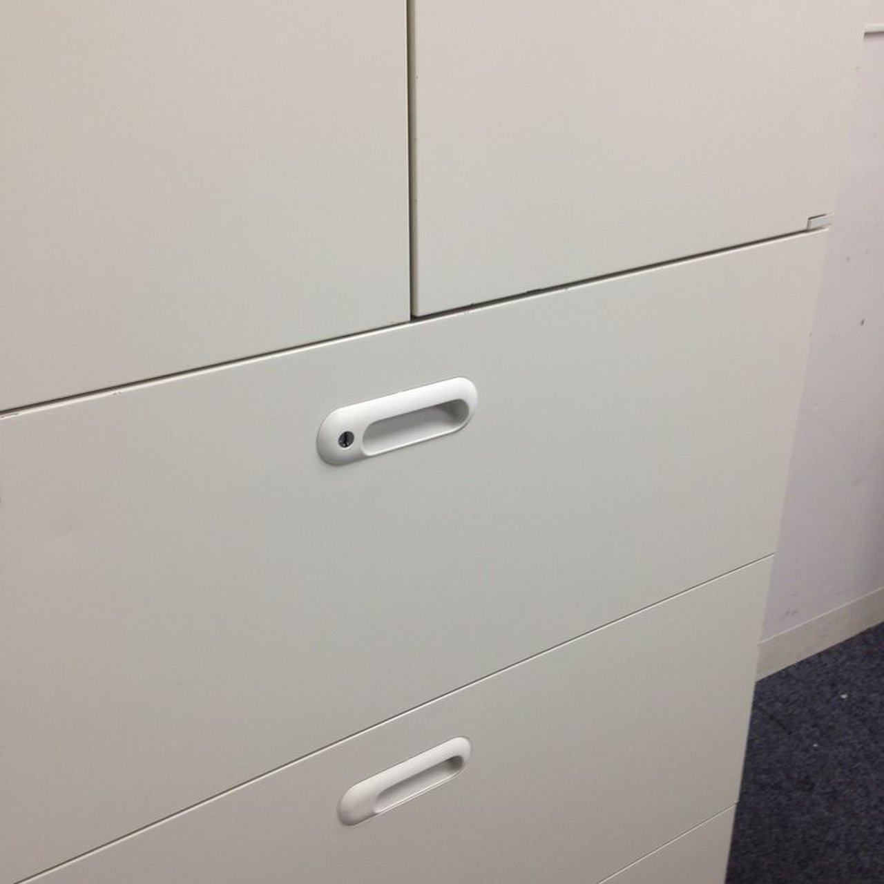 - 多数不具合あり引出の開閉不可、施錠不可、棚板無しといったその書庫の本来の効用を果たすための機能以外の多数が使用不可(例、扉、引出の開閉がしづらいなどがある。 )