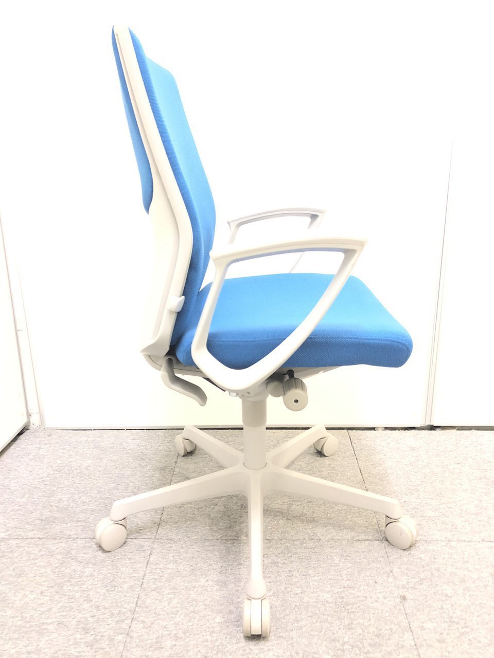 ロットで入荷しました。肘付き・ハイバックチェア。ネイビーブルーのため、色を合わせやすいのがメリットです。