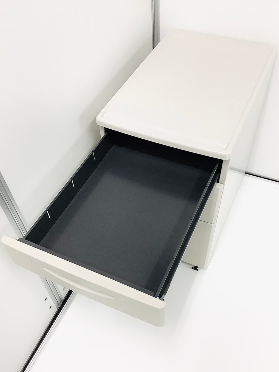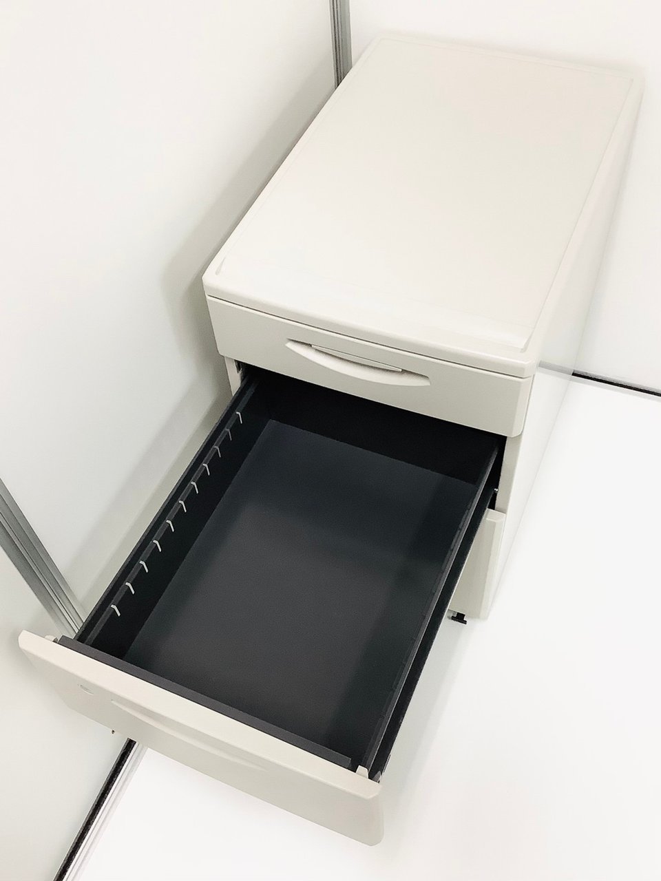 本ワゴンは一般的に、H700タイプのデスクに収納するものとなっております。
