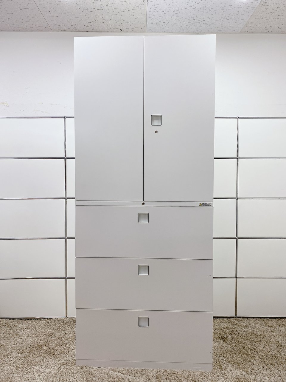 【上下書庫セット】【両開き(上)×3段ラテラル(下)】【オカムラ】【レクトライン】【ホワイト】【4台】