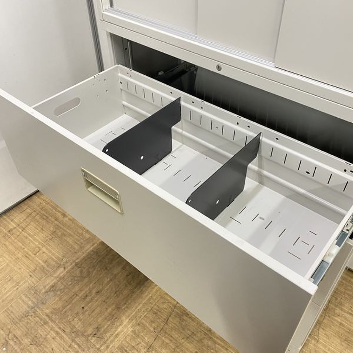- 一部不具合ありそ引出の開閉不可、施錠不可、棚板無しといったの書庫の本来の効用を果たすための機能以外の一部が使用不可(例、扉、引出の開閉がしづらいなどがある。 )