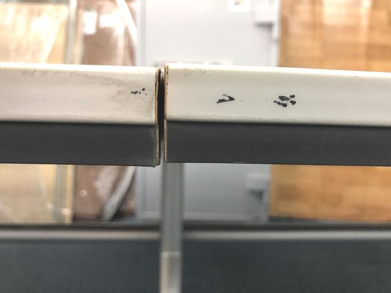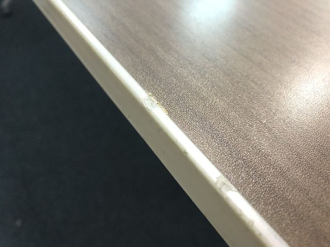 - あり黄ばみ・変色が広い範囲にうっすらある、または濃い黄ばみ・変色が一部ある。(例、天板、幕板、棚板、サイド部分、脚部等にある。)