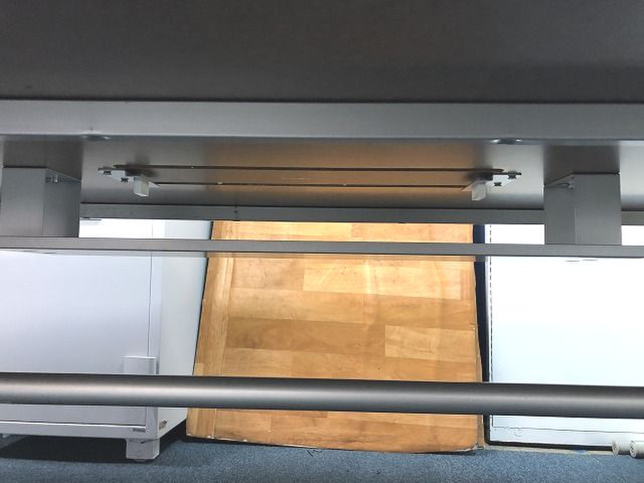 - 一部不具合あり天板歪み、アジャスター無し、キャスター使用不可ようなそのテーブルの本来の効用を果たすための機能以外の一部が使用不可な状態。(例、キャスターロッ ク機能使用不可、棚板無し等がある。)