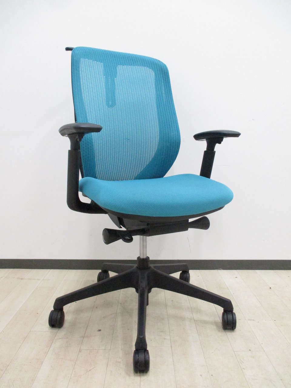 オカムラ製 シルフィーシリーズ 稼働肘 ハイバック ブルーカラー!!