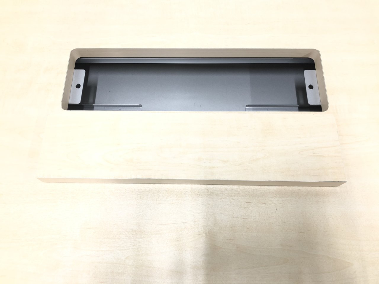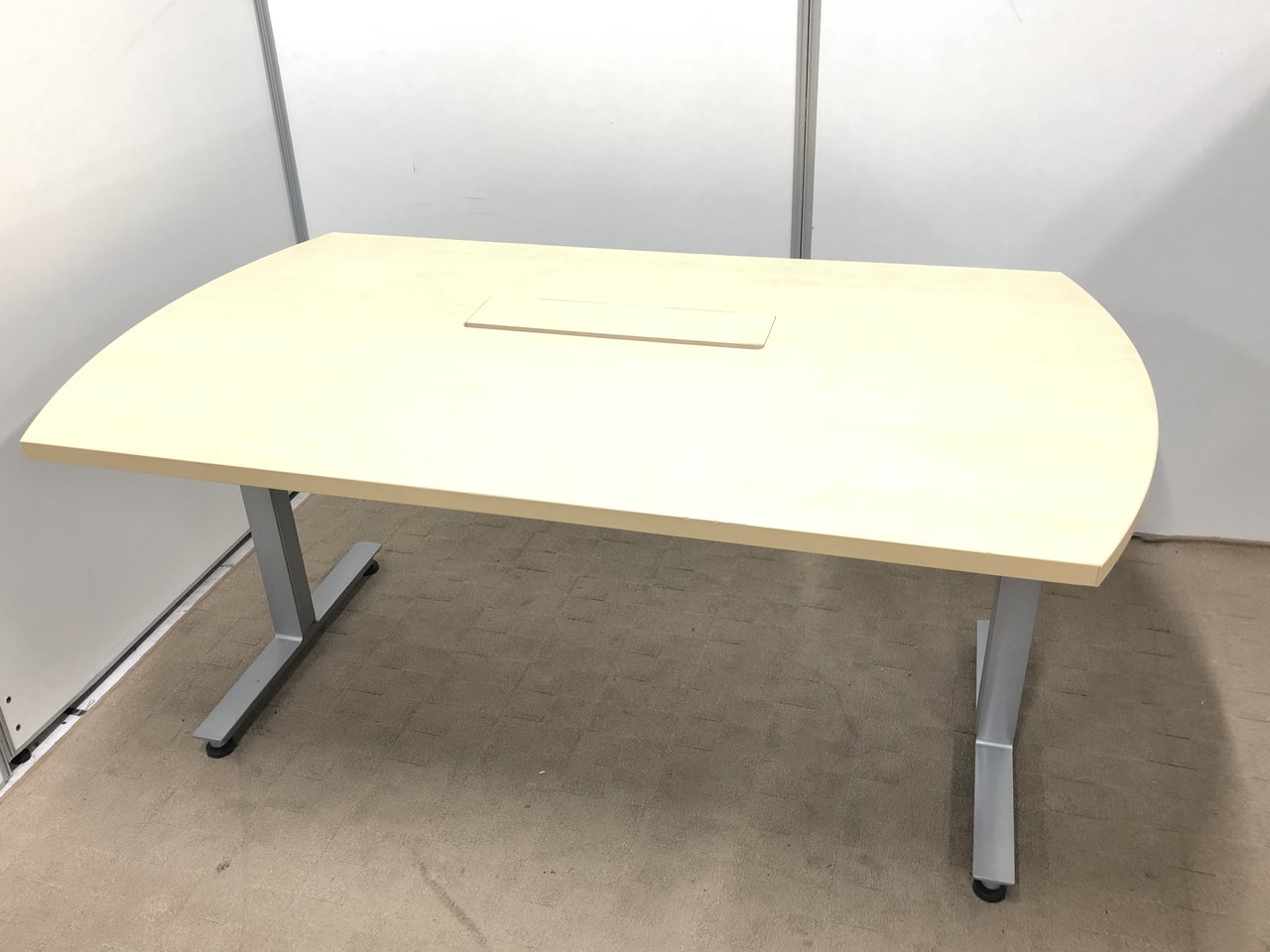通常、ミーティングテーブルの配線口は天板のど真ん中に来るようになっておりますが