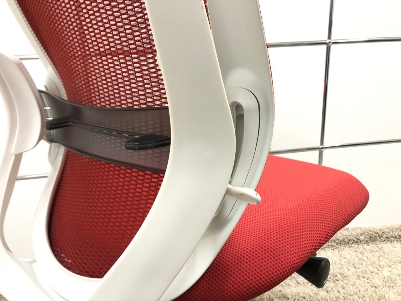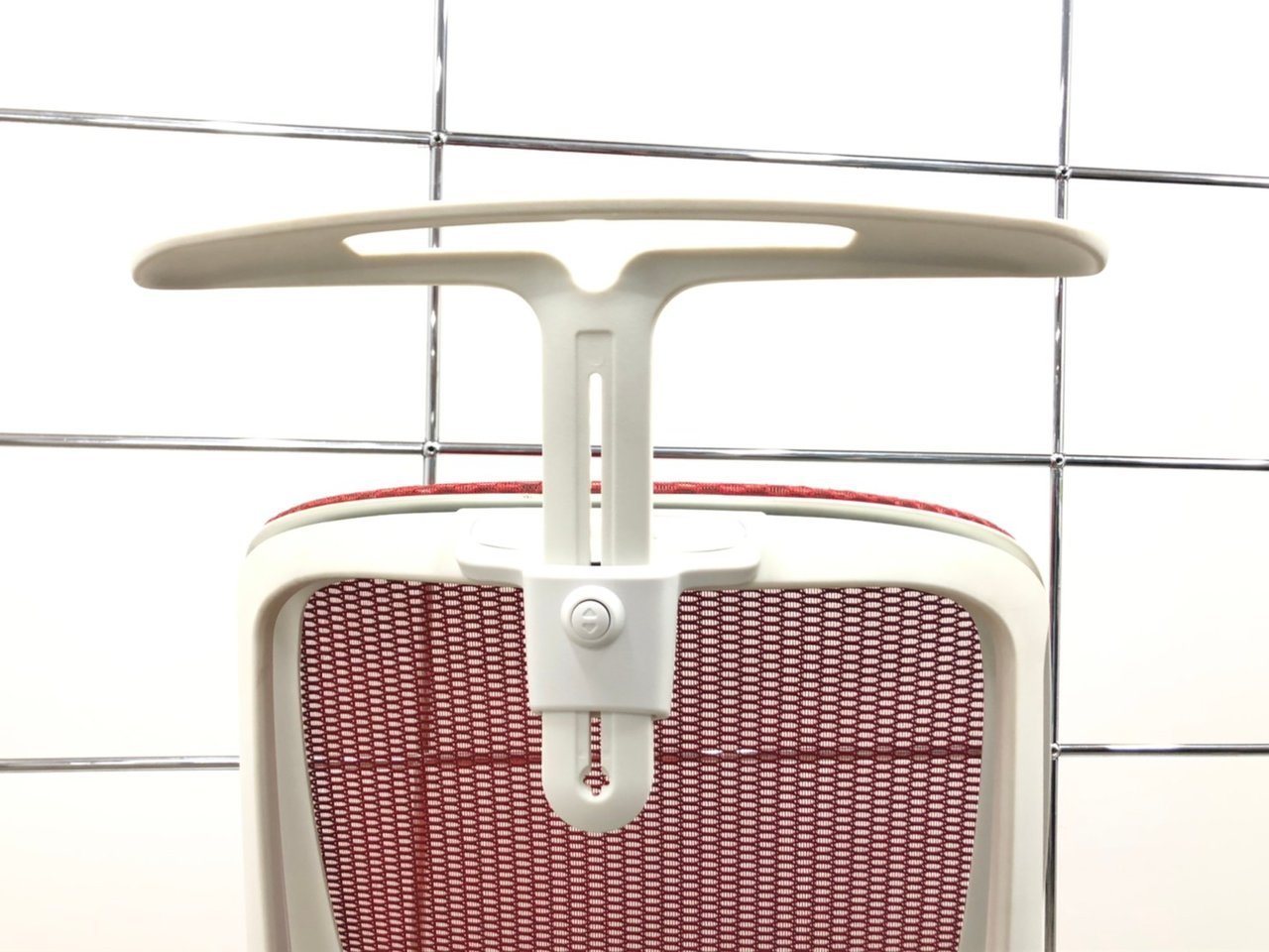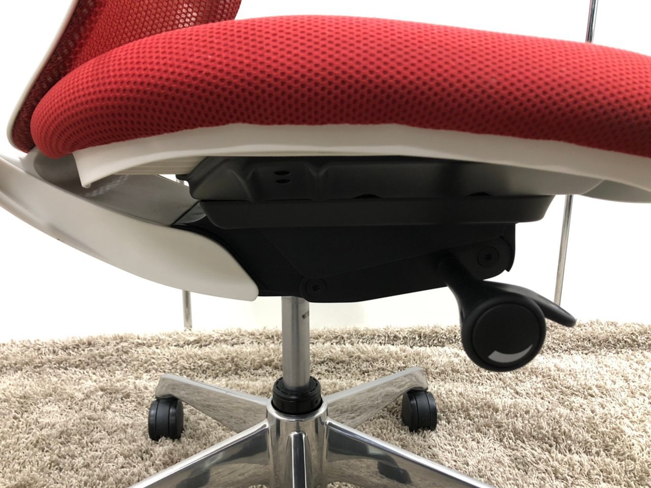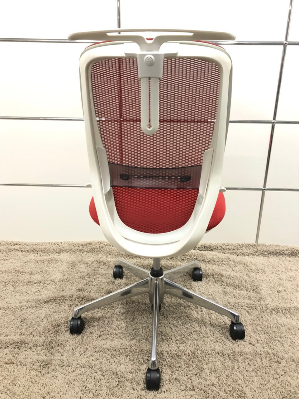 【背もたれのカーブを2段階で変えられる!】■オカムラ製 シルフィーチェア レッド ホワイトボディ アルミポリッシュ脚 ハンガー付き