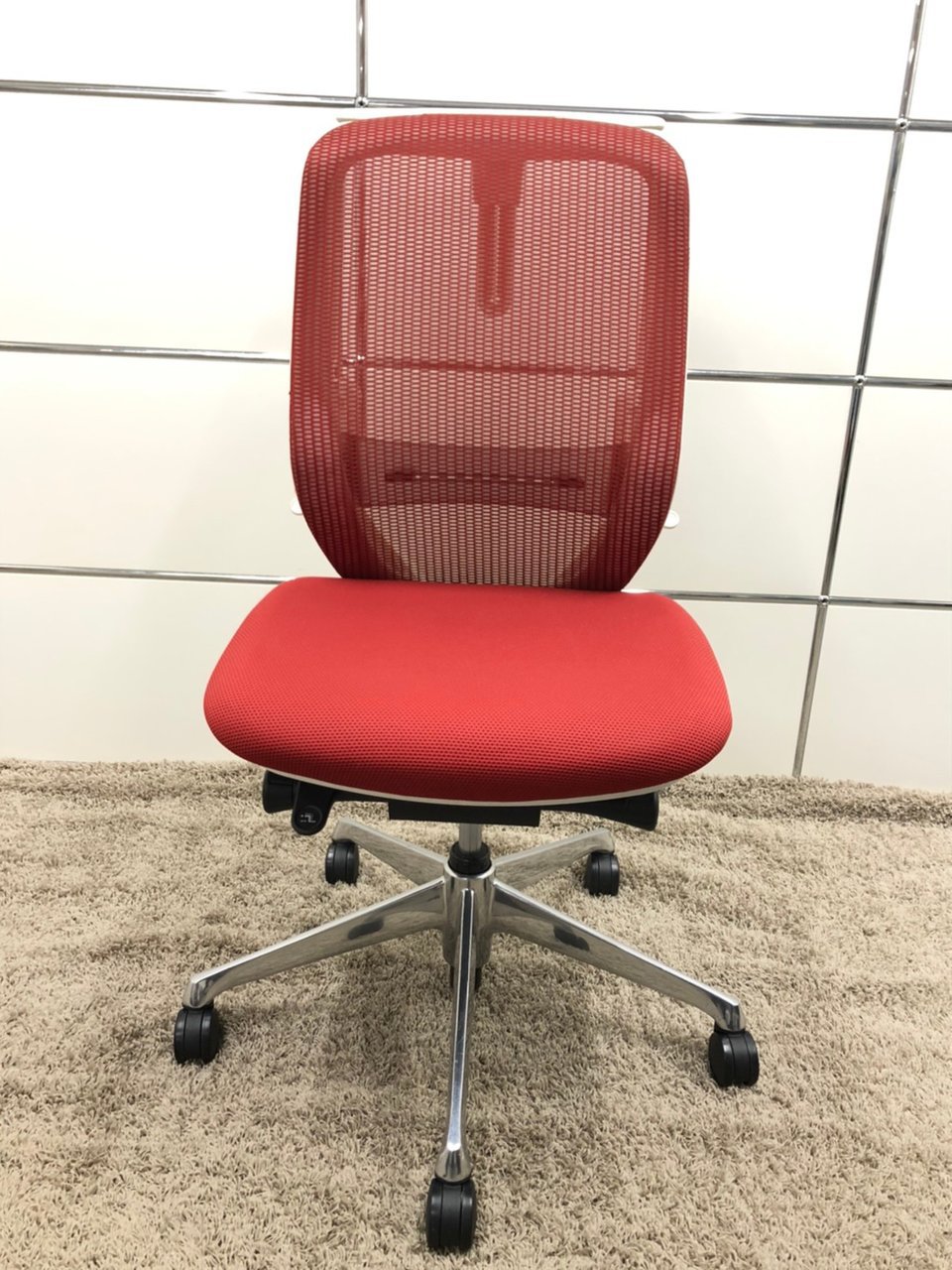 オカムラ製 シルフィー 肘無しハイバックチェア レッドカラー!!