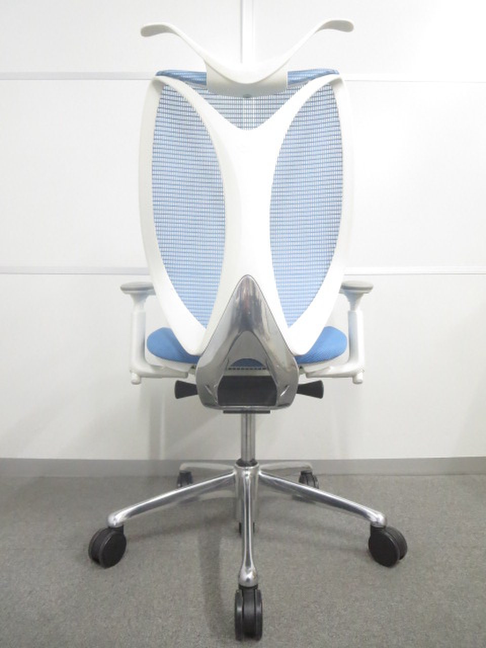 【入荷商品】【4脚入荷】オカムラ製 サブリナチェア ブルー×ホワイトカラー 【可動肘】【背面メッシュ】【通気性抜群】【国内メーカー】