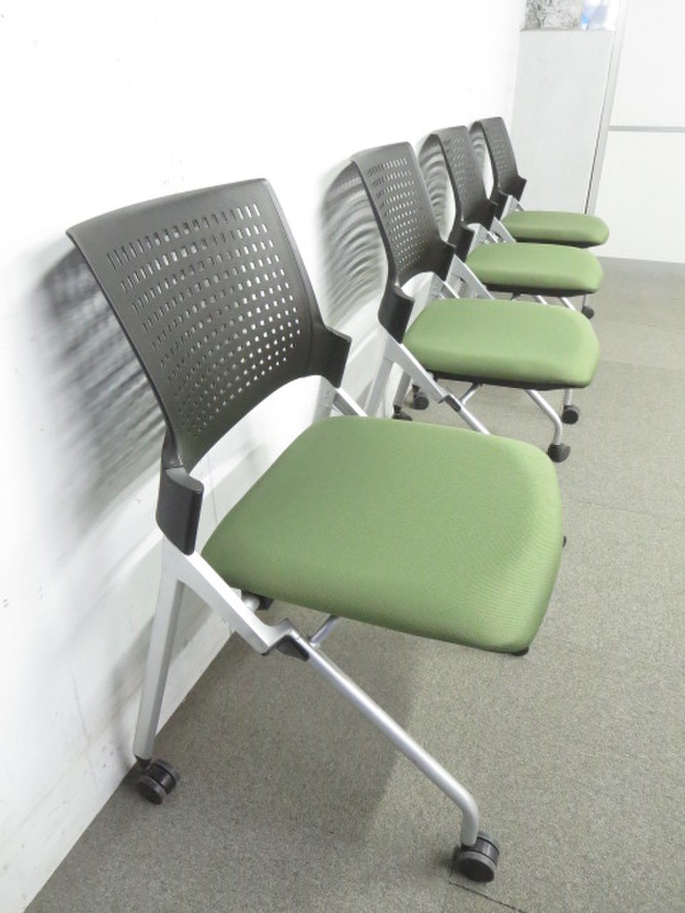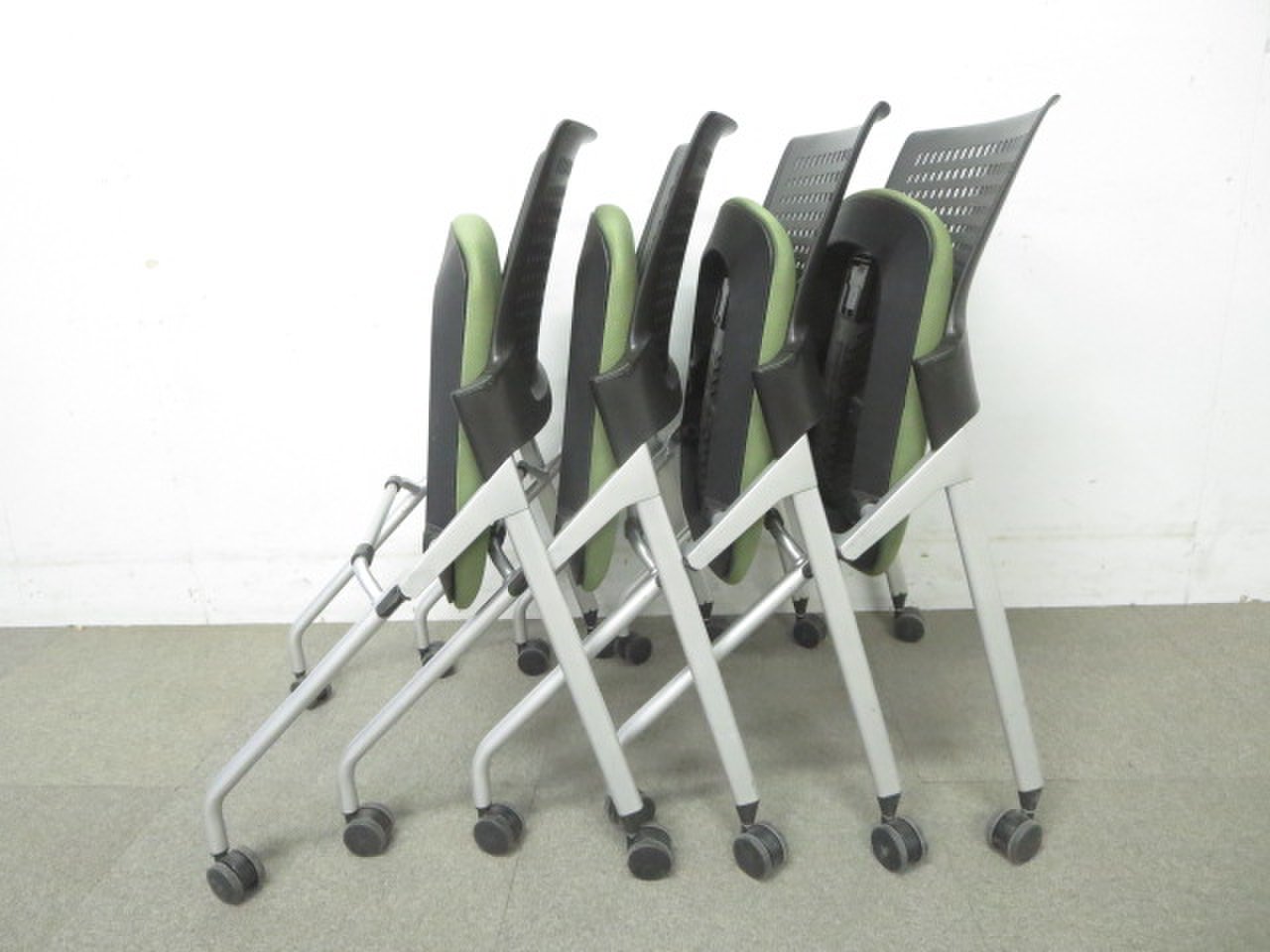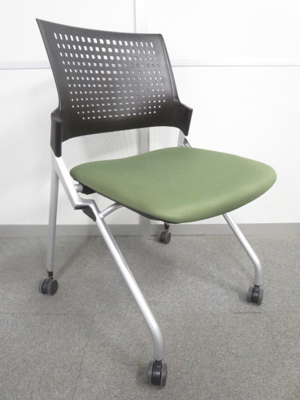 【キャスター付で移動がラクラク!】■イトーキ製 ネスティングチェア ■モノンシリーズ アイビーグリーン- 川崎店